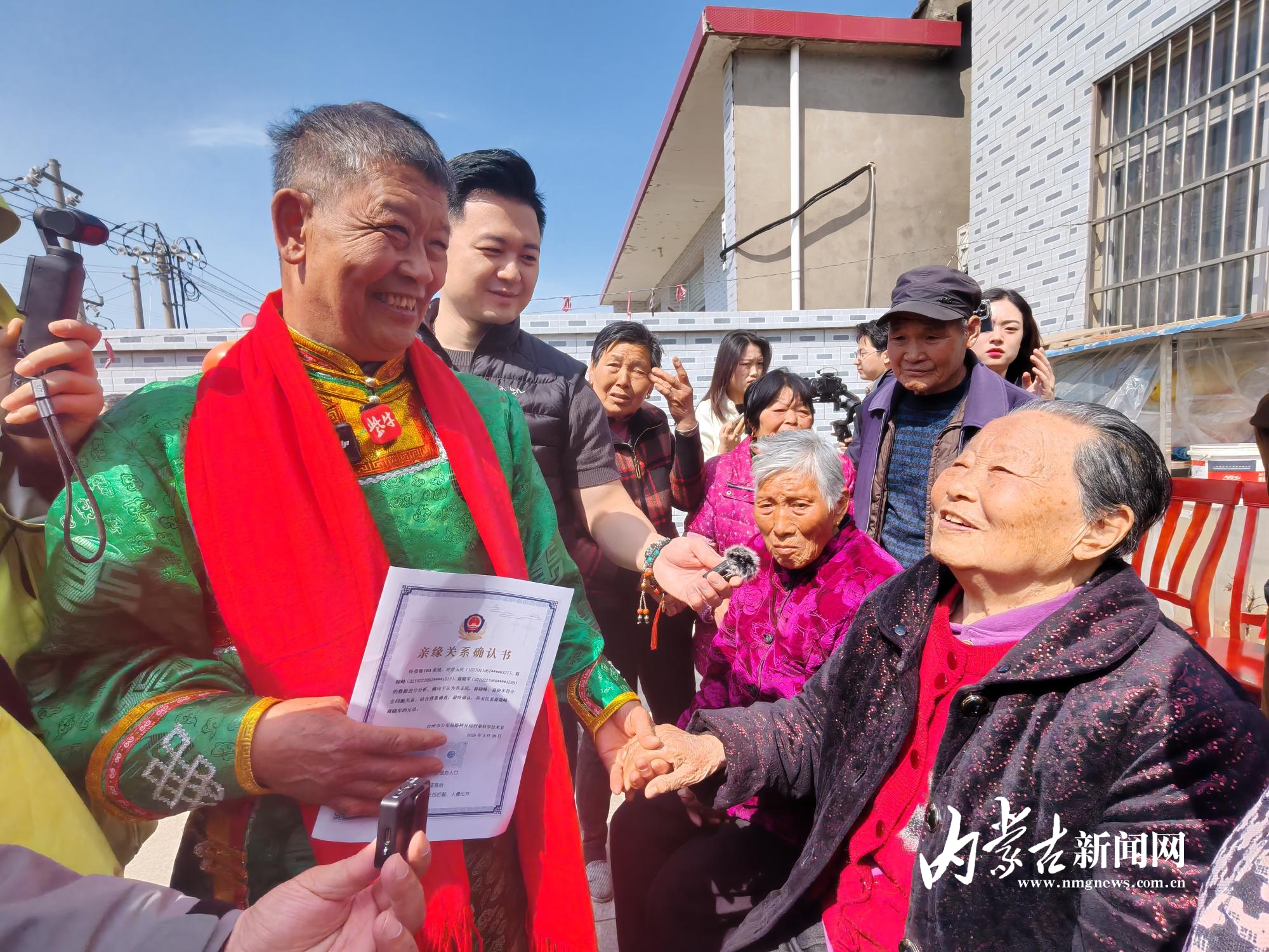 在乔玉民到达前一天,他在高邮的侄儿打电话给吴霞,仍然不敢相信,那个60多年前送走的叔叔,真的找回来了。得到肯定的消息后,小伙子兴奋地说:“那我们现在就搭喜棚、买鞭炮,迎接亲人回家!”