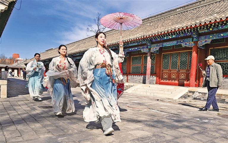 4月5日,身着汉服的讲解员们成为春天里的一道靓丽风景。当日,呼和浩特市文化旅游广电局(文物局)在公主府博物馆举办主题为“春日来信 桃你欢心”的第二届桃花节。活动期间,“文创青城”文创集市、非遗手作集市、相亲大会赛等精彩内容让游客在游玩的同时感受传统文化的魅力,活动将持续到4月12日。草原云·内蒙古新闻网记者 王磊 摄