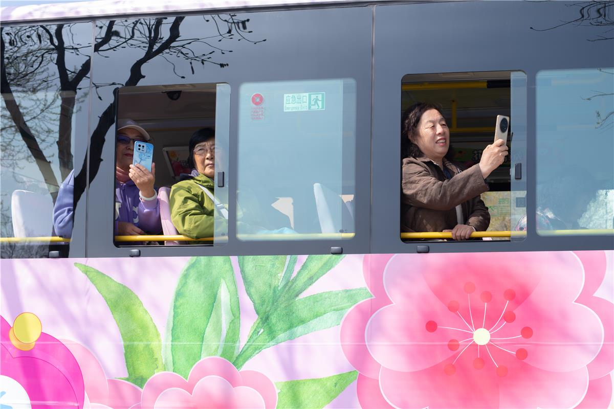 记者在现场看到,几辆巴士车身绘满花影,车厢内布置了五彩缤纷的花朵,拉环也充满春日元素,美观又浪漫。伴随几辆巴士缓缓开动,车厢内乘客们有说有笑欣赏着窗外粉红色的榆叶梅和淡紫色的丁香花,不时举起手机拍下眼前的美景,感受着灿烂的春光,体验着城市的活力、魅力和艺术气息。