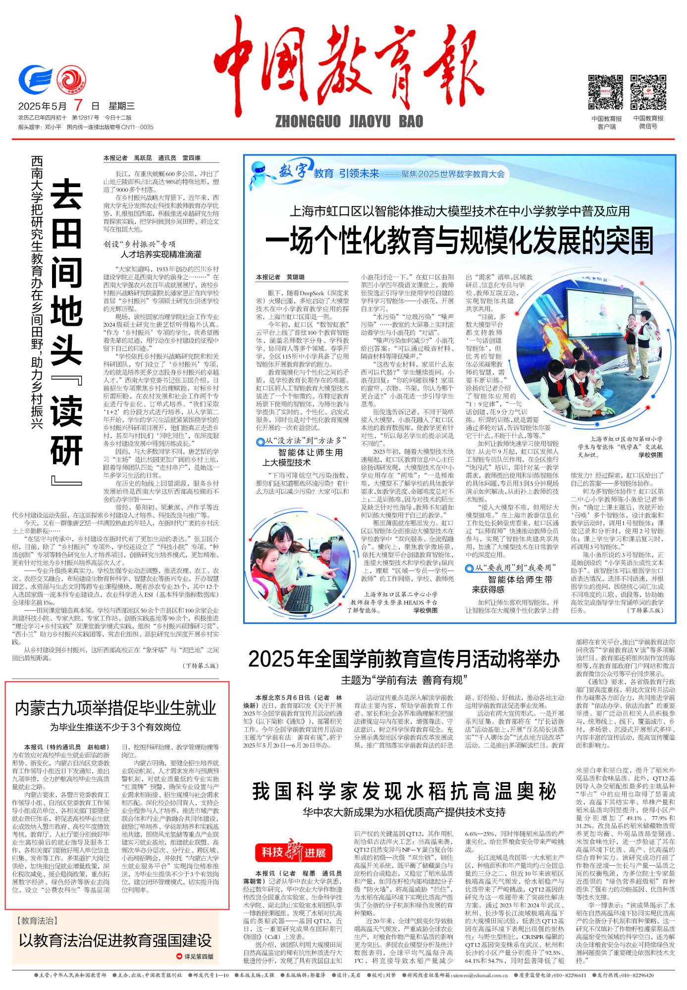 2025年5月7日《中国教育报》第1版刊发了《内蒙古九项举措促毕业生就业 为毕业生推送不少于3个有效岗位》的文章,报道了为有效应对高校毕业生就业面临的新形势、新变化,内蒙古自治区党委教育工作领导小组近日下发通知,推出九项举措,全力护航高校毕业生高质量就业之路。