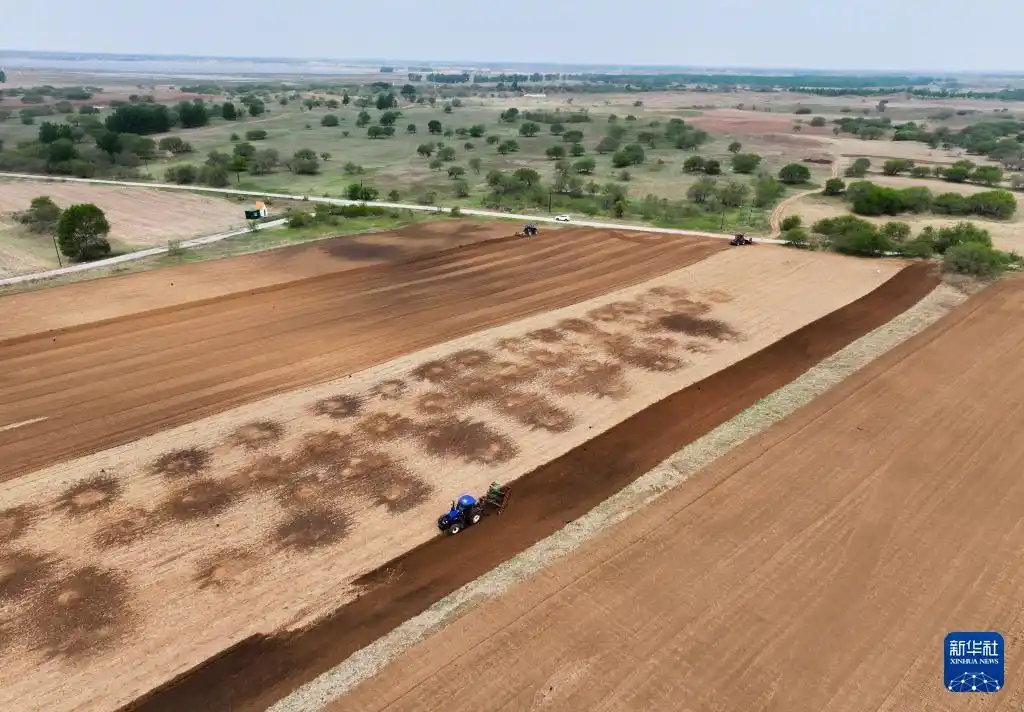 通辽市科左后旗巴胡塔苏木伊和布拉格嘎查大田播种现场。
