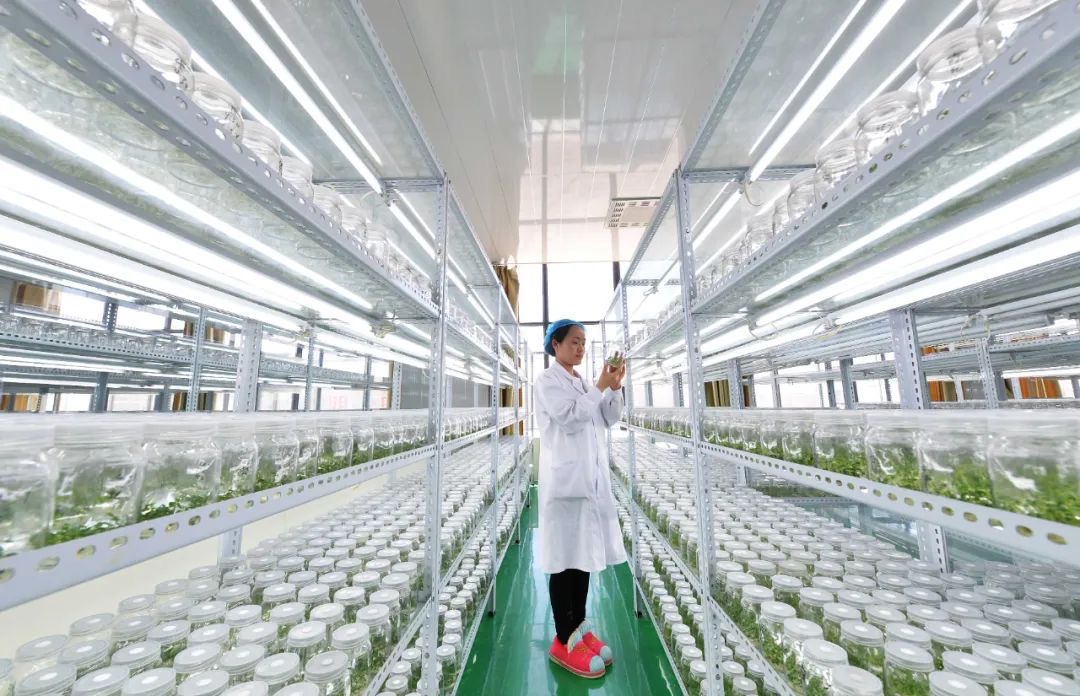 内蒙古中加农业生物科技有限公司工作人员在智能化温室精心培育良种。