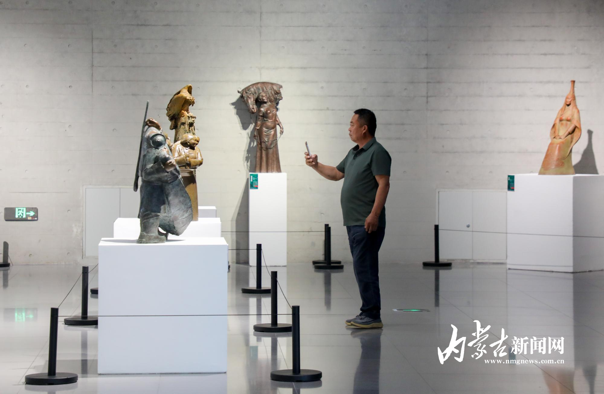 6月5日,呼和浩特市民欣赏雕塑作品。据了解,由中国城市雕塑家协会和呼和浩特雕塑艺术馆主办的“走进北疆·第二届呼和浩特创作营主题雕塑展”于5月31日开展,共展出12位国内知名艺术家的83件精美雕塑力作。每一件雕塑蕴含着艺术家的独特视角和精湛技艺,展现出从细腻造型到深刻内涵的艺术魅力,为市民游客提供一场视觉与思想的交融之旅。