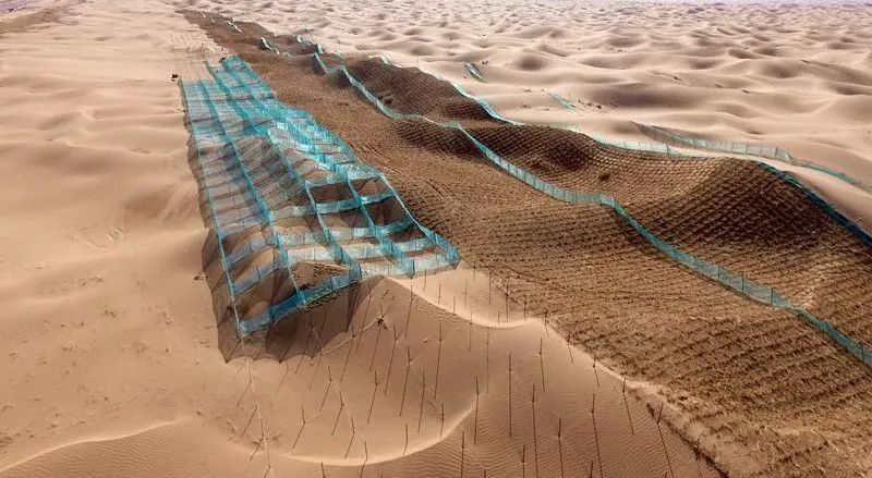 2021年12月29日,乌海—玛沁高速公路青铜峡至中卫段顺利建成通车。其中有18公里横贯腾格里沙漠腹地,腾格里沙漠地形起伏大,自然环境恶劣,天然植被覆盖率不到1%,气候干旱、降水稀少、蒸发量大、风大沙多,年风沙天气多达200天,最大风力达11级,风沙危害严重,黄沙没胫、人畜难行。