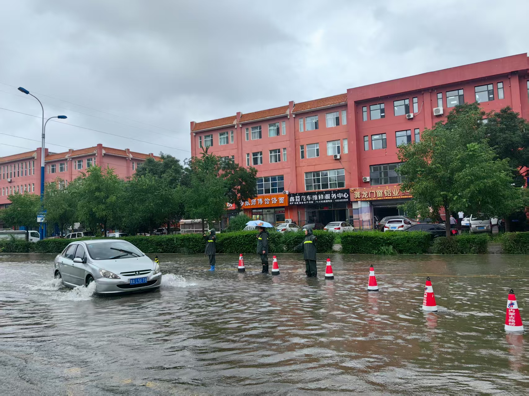 昭乌达南路街道新时代文明实践所联合交警对水深路段进行封路并疏导交通。