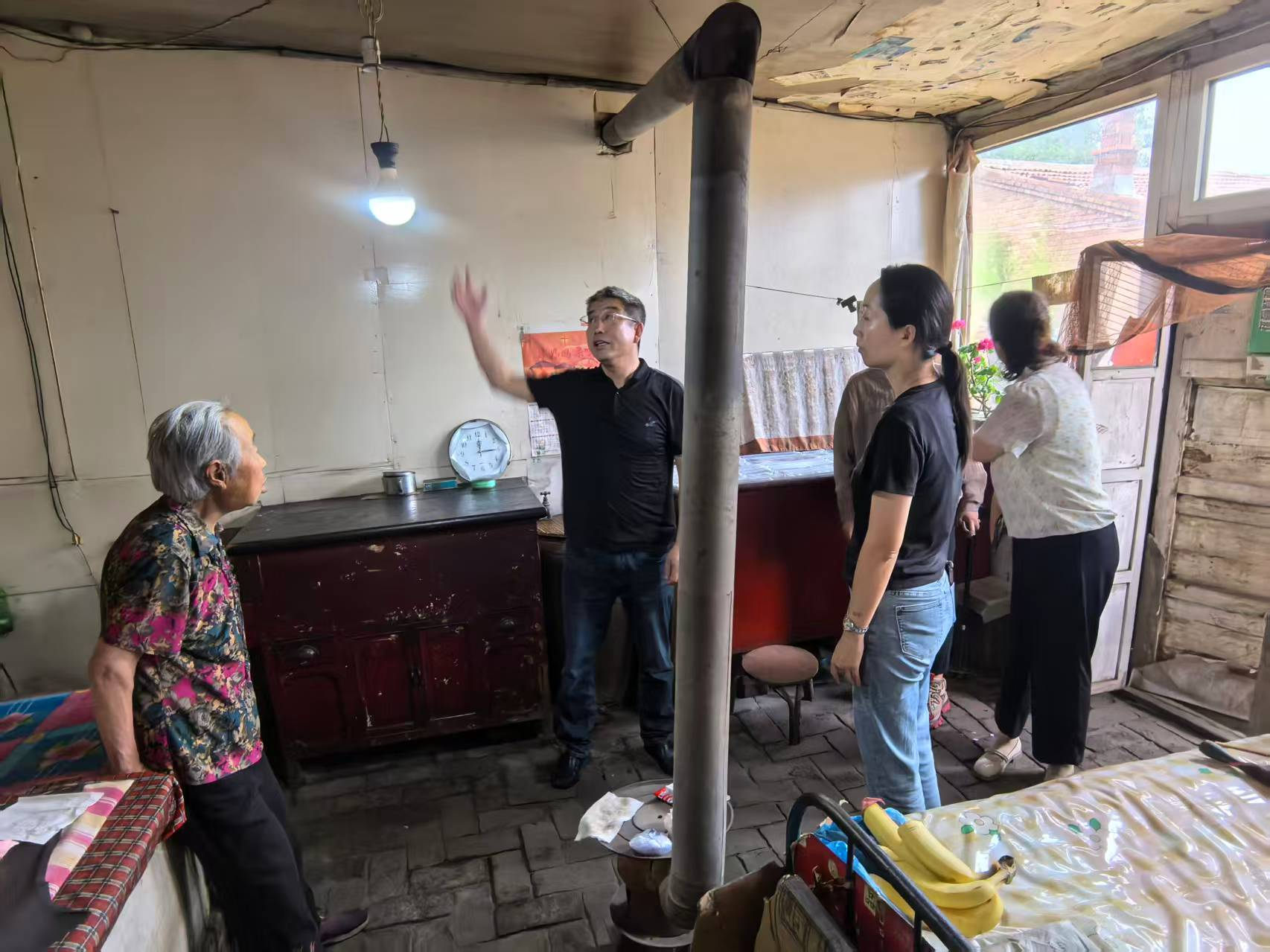 榆林镇新时代文明实践所工作人员、志愿者排查孤寡老人居所安全性。