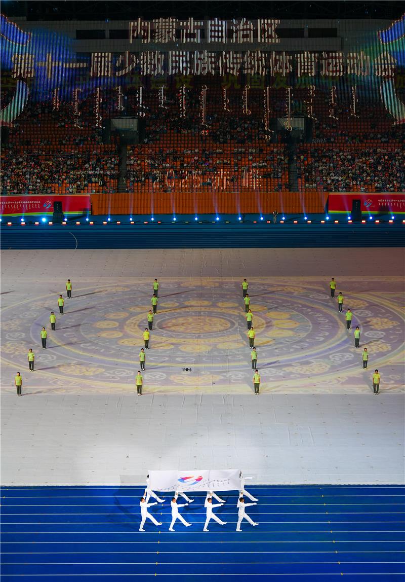 内蒙古自治区第十一届少数民族传统体育运动会会旗入场。