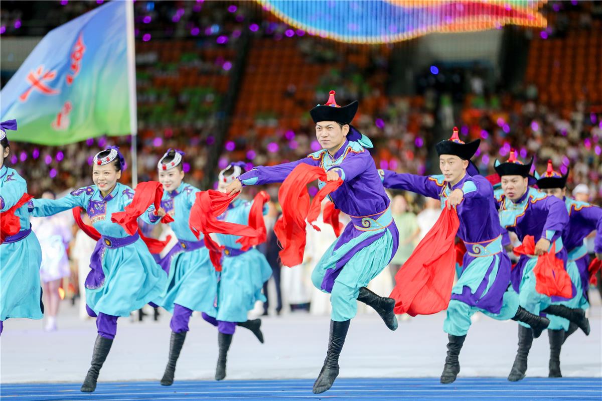 7月30日,内蒙古自治区第十一届少数民族传统体育运动会民族大联欢在赤峰市举行。
