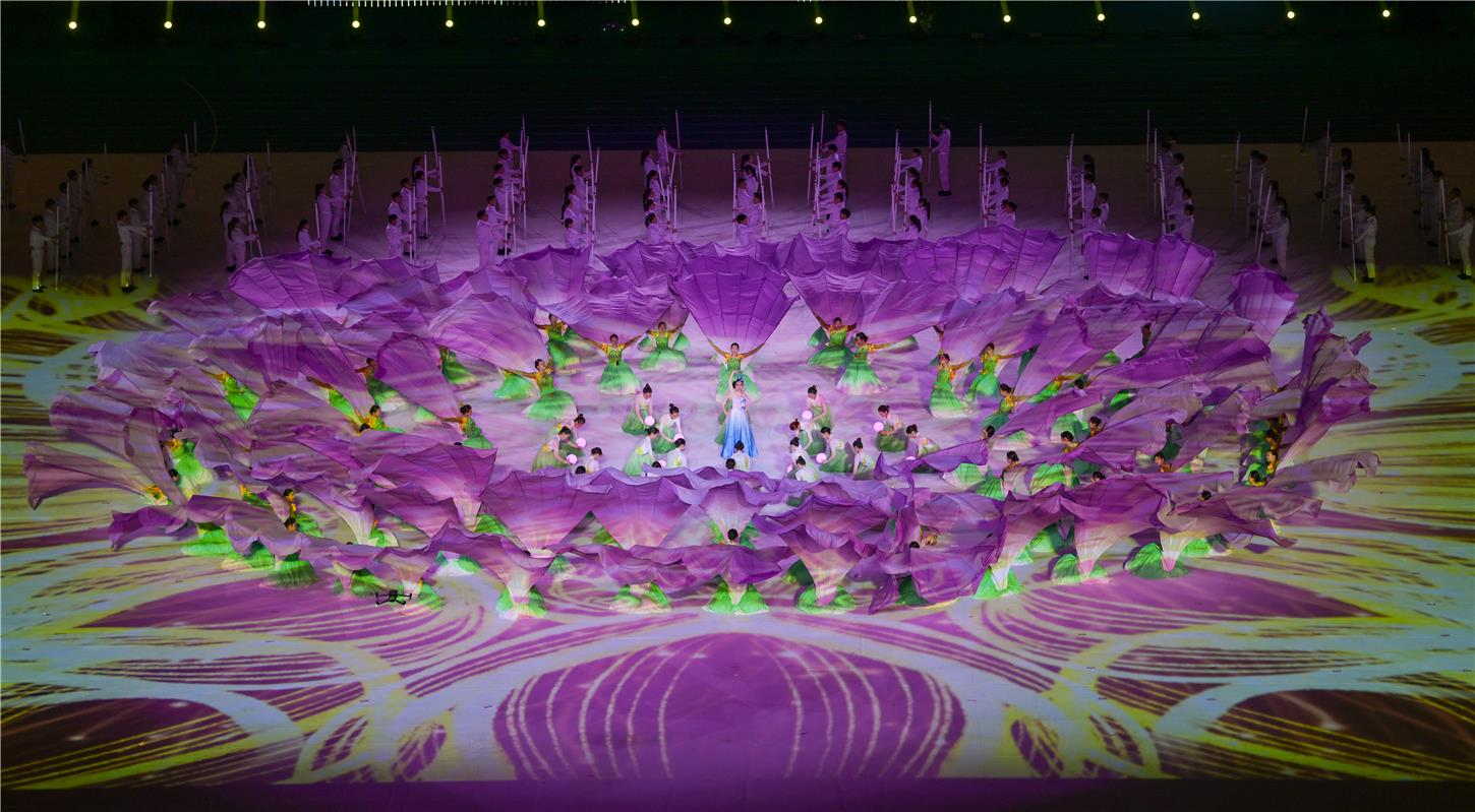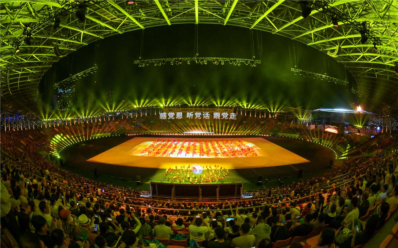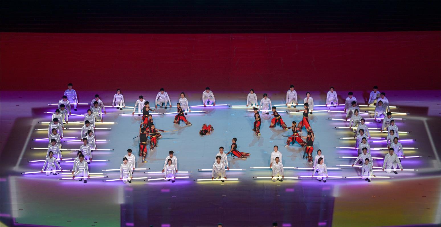 当晚20时,内蒙古自治区12个盟市代表团载歌载舞步入会场,随后一场精彩的文体表演拉开帷幕,通过“龙腾北疆”“万山红遍”“同心筑梦”三个篇章,展现了新时代内蒙古自治区各族群众牢记嘱托、手足相亲,为建设亮丽内蒙古、共圆伟大中国梦守望相助、感恩奋进的昂扬风貌。