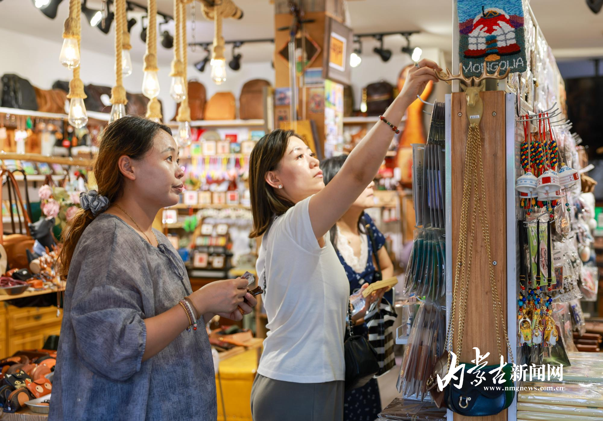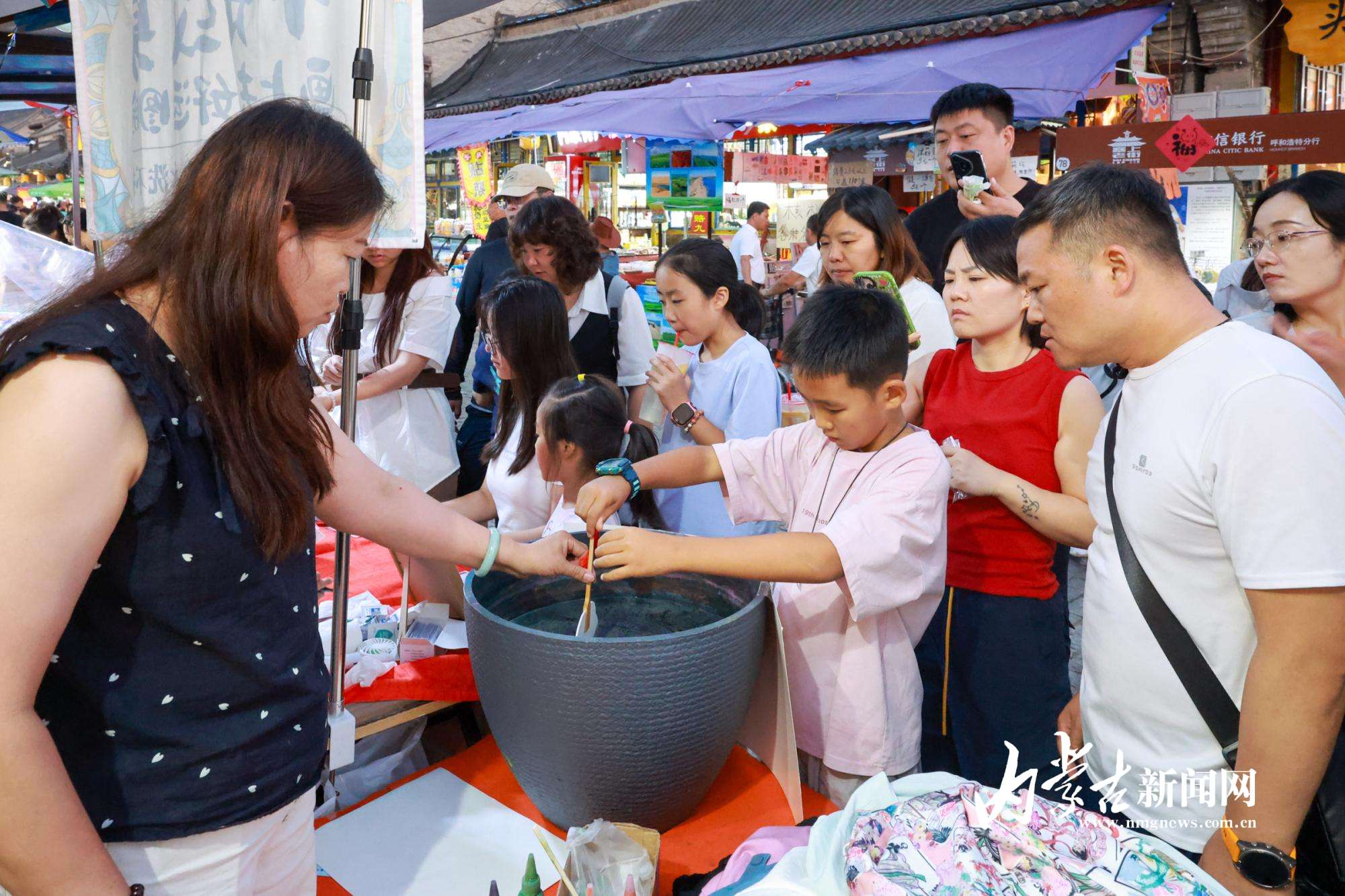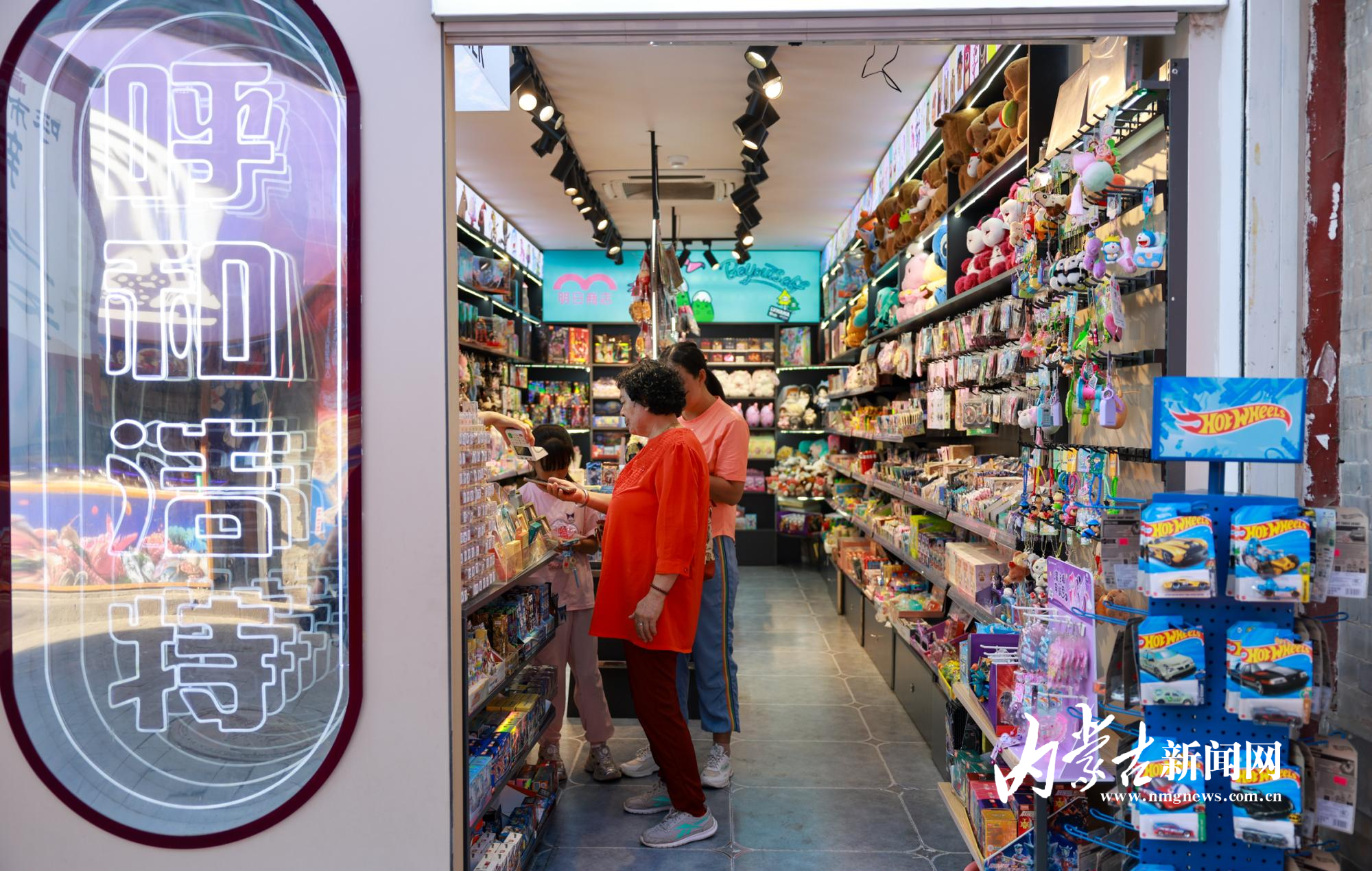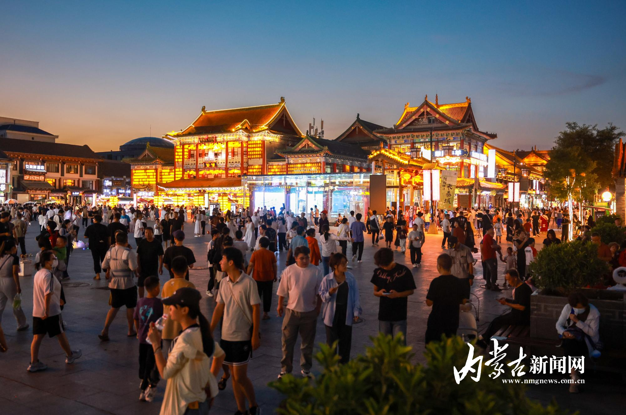 8月2日,游客们在呼和浩特市玉泉区塞上老街街区游玩。当日,旅拍游客穿梭在古巷,非遗体验引人驻足,夜市灯火璀璨,文创产品热销,升腾的烟火气助燃“夏日经济”,呼和浩特暑期文旅市场持续升温。摄影/草原云·内蒙古新闻网首席记者 牛天甲