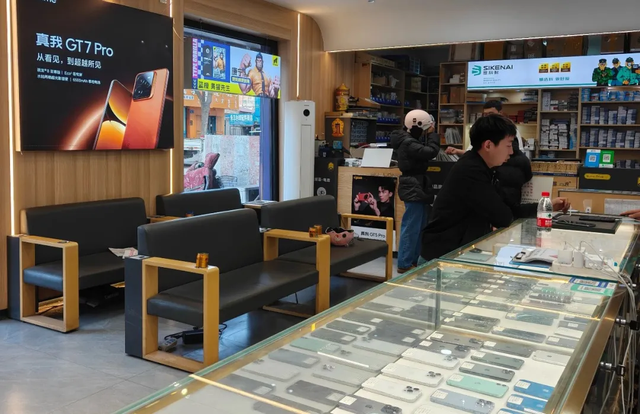 在乌海万达广场的一家手机销售门店内,店长苗堇一正在为消费者介绍不同机型的特点。“我们结合以旧换新政策,部分机型推出了专属优惠,购机可获得相应的赠品。目前我们门店日均客流量稳定在300人次左右,同比增长了48%。购买手机、笔记本电脑、平板等产品的消费者占比大概在50%。”苗堇一说。