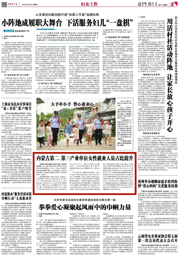2025年8月9日,《中国妇女报》第3版刊发题为《内蒙古第二、第三产业单位女性就业人员占比提升》的文章,报道了2019—2023年内蒙古女性就业规模不断扩大,女性就业人员占比稳步提升,就业性别差距不断缩小,就业结构进一步优化。