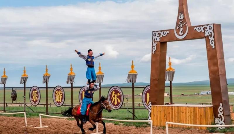 国家4A级旅游景区,以沉浸式游牧文化体验为核心,提供传统那达慕表演、蒙古族家访、骑马射箭等活动,以及来呼伦贝尔绝对不能错过的大型马上竞技表演——马之舞。