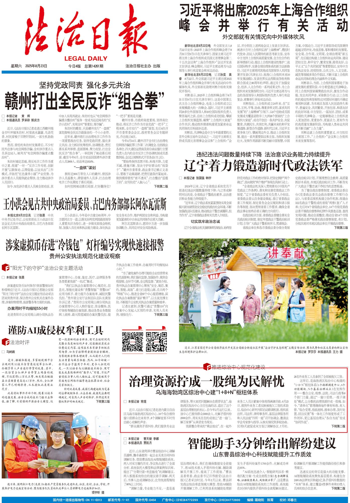 2025年8月23日,《法治日报》第1版刊发题为《治理资源拧成一股绳为民解忧 乌海海勃湾区综治中心建“1+8+N”枢纽体系》的文章,报道了近日,记者走进内蒙古自治区乌海市海勃湾区综治中心,10个综合接待窗口前群众往来有序,8个调解室里不时传出耐心劝解的声音,海勃湾区综治中心构建的“1+8+N”枢纽体系在发挥作用——整合公安、检察、法院、司法行政等8个部门力量,通过“一窗口受理、一揽子调处”模式,让分散的治理资源拧成一股绳。