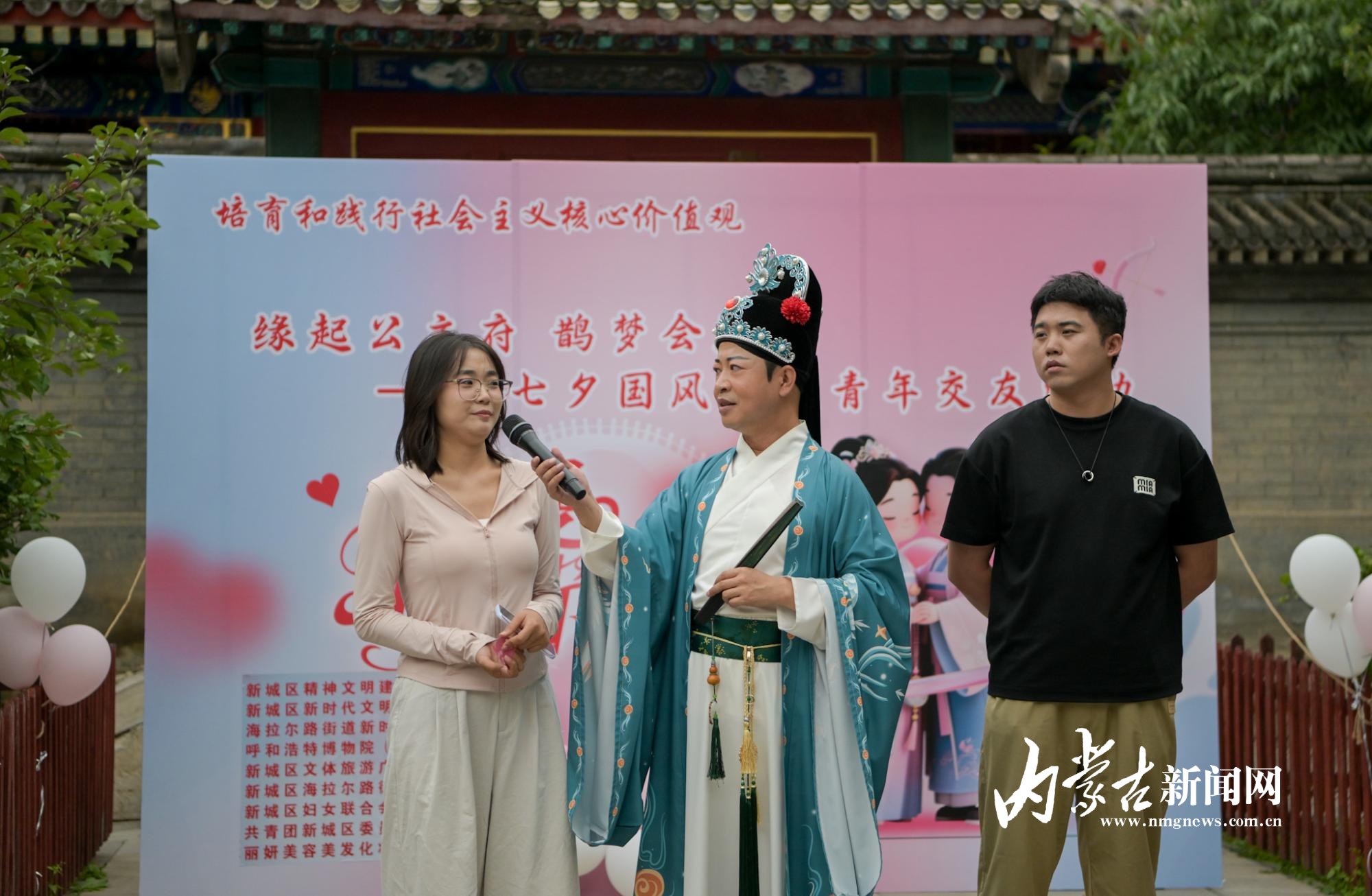 8月28日下午,呼和浩特市新城区举办的“缘起公主府·鹊梦会兰夜”——七夕国风主题青年交友活动在公主府博物馆举行。本次活动以传统七夕佳节为契机,融合国风雅韵与青年交友,独唱表演、互动游戏等环节,为广大青年提供一个沉浸式体验传统文化、拓展社交圈层的平台。摄影/草原云·内蒙古新闻网首席记者 牛天甲