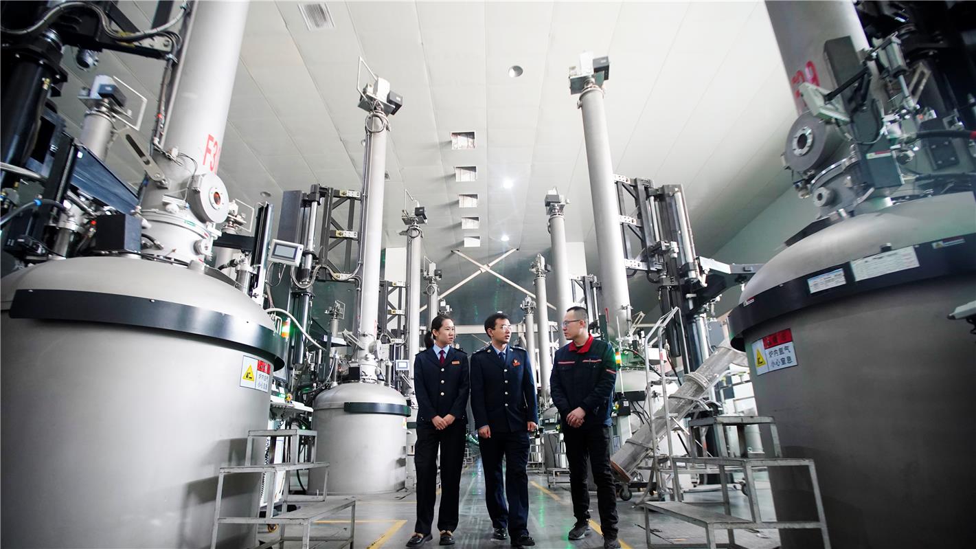 税务局的工作人员在硅生产企业宣传税收优惠政策。李强 摄