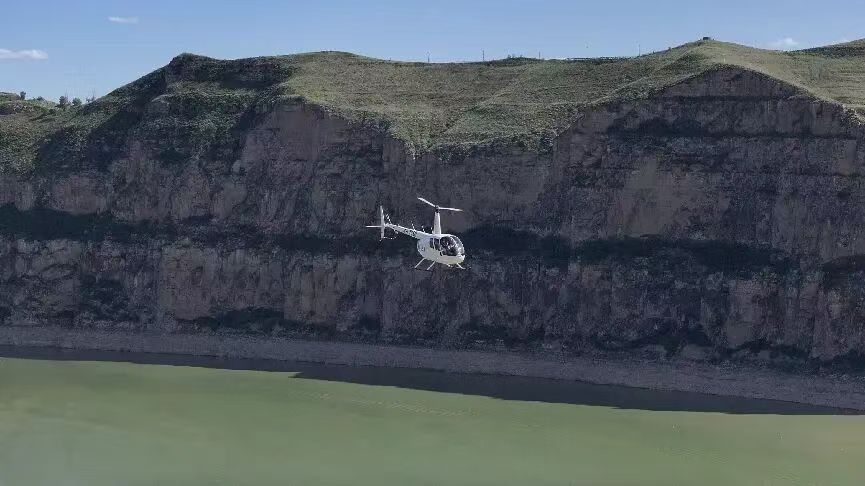 直升机在黄河大峡谷上空盘旋