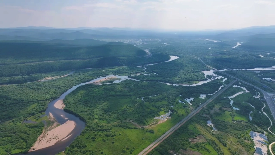 金色河流与青翠山峦交织——