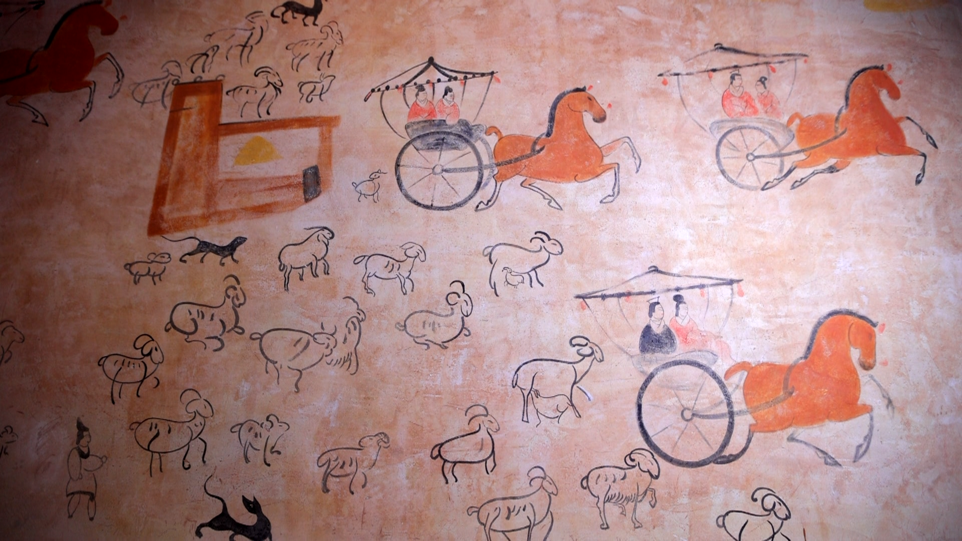 墓室壁画牧羊图。