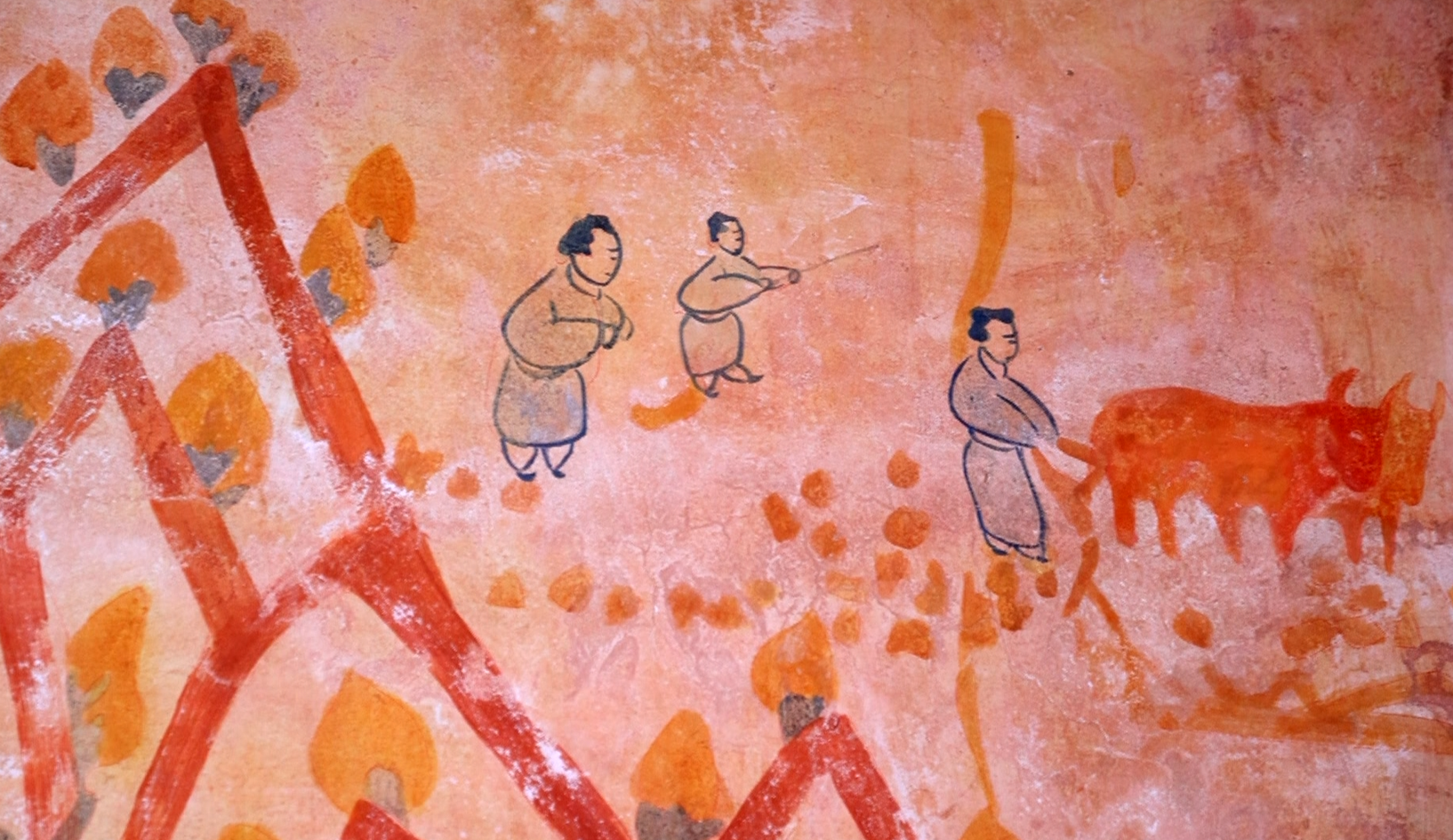 墓室壁画耕牛图。