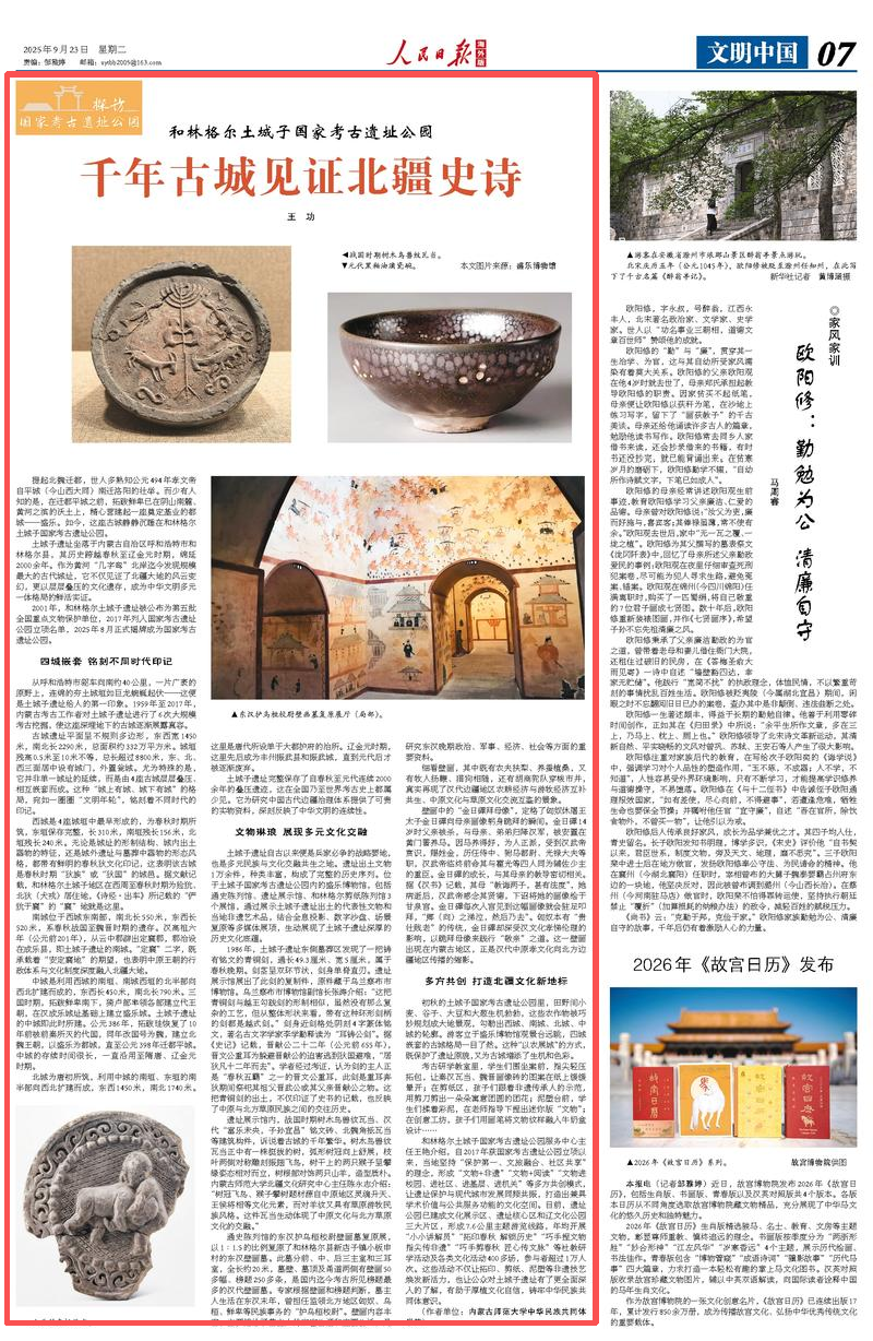 和林格尔土城子国家考古遗址公园服务中心主任王艳介绍,自2017年获国家考古遗址公园立项以来,当地坚持“保护第一、文旅融合、社区共享”的理念,形成“文物+非遗”“文物+阅读”“文物进校园、进社区、进基层、进机关”等多方共创模式,让遗址保护与现代城市发展同频共振,打造出兼具学术价值与公共服务功能的文化空间。目前,遗址公园已建成文化展示区、遗址核心区和辽文化公园三大片区,形成7.6公里主题游览线路,年均开展“小小讲解员”“拓印春秋 解锁历史”“巧手捏文物 指尖传非遗”“巧手剪春秋 匠心传文脉”等社教研学活动及各类文化活动400多场,参与者超过1万人次。这些活动不仅让拓印、剪纸、泥塑等非遗技艺焕发新活力,也让公众对土城子遗址有了更全面深入的了解,有助于厚植文化自信,铸牢中华民族共同体意识。(王功)(作者单位:内蒙古师范大学中华民族共同体学院)