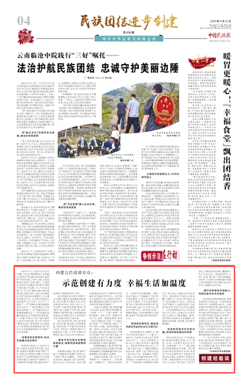2025年9月23日,《中国民族报》第4版刊发题为《内蒙古巴彦淖尔市:示范创建有力度 幸福生活加温度》的文章,报道了2023年6月,习近平总书记在内蒙古自治区考察调研时,首次提出“铸牢中华民族共同体意识是新时代党的民族工作的主线,也是民族地区各项工作的主线”。巴彦淖尔市始终牢记嘱托,将“铸牢”贯穿于想问题、作决策、干工作的全过程。