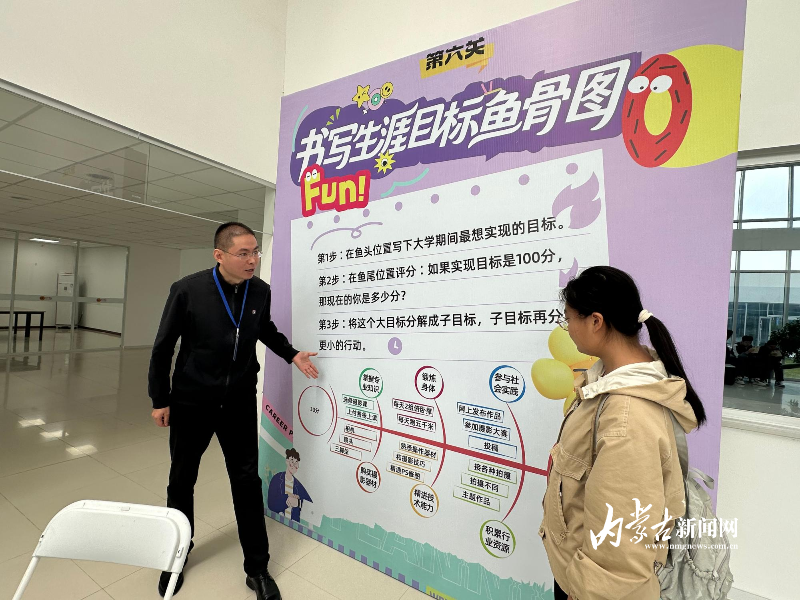 活动当天,100名闯关者手持生涯档案卡,挑战7个不同颜色的关卡。在“职业猜猜猜”环节,两人一组互相描述职业,现场笑声不断。