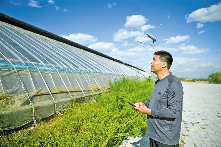 技术人员通过手机上的智慧农业平台,实现自动灌溉、自动卷帘、自动放风等智能化控制。