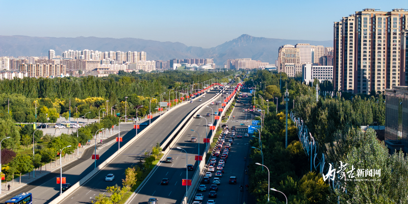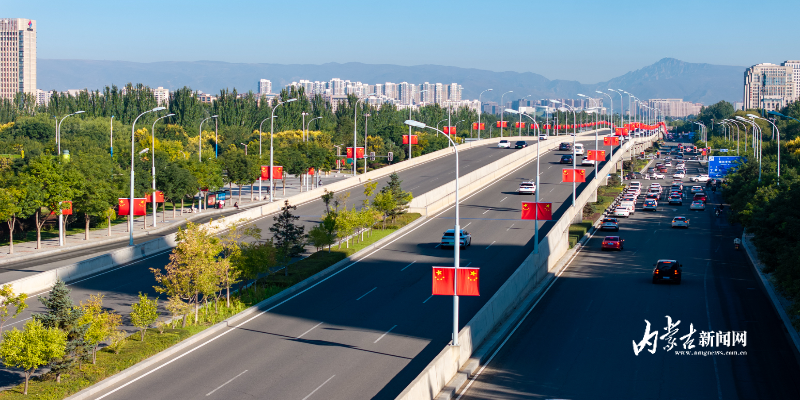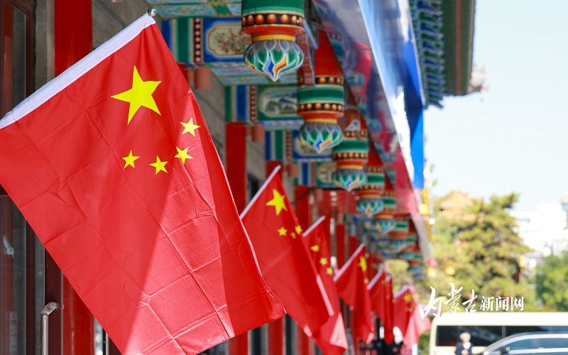 连日来,呼和浩特街道两旁,一面面鲜艳的五星红旗整齐悬挂,将整个青城装点成一片红色的海洋。一抹抹“中国红”,为即将到来的国庆节增添了浓浓的喜庆氛围。摄影/草原云·内蒙古新闻网首席记者 牛天甲