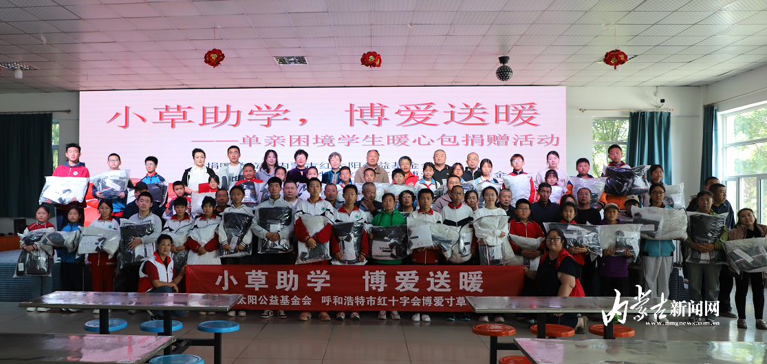 本网讯(草原云·内蒙古新闻网记者 王利军 实习生 王斯特)9月30日上午,“小草助学·博爱送暖——单亲困境学生暖心包”捐赠活动走进土默特左旗蒙古族学校。呼和浩特市红十字会博爱寸草心基金会联合内蒙古红太阳公益基金会,为来自土默特左旗28所学校的85名受助学生(含中小学生及大学生)送上总价值30500元的定制暖心包,每套暖心包内含1件羽绒服和1套运动衣和1个水杯,用实实在在的关怀温暖孩子们的秋冬。