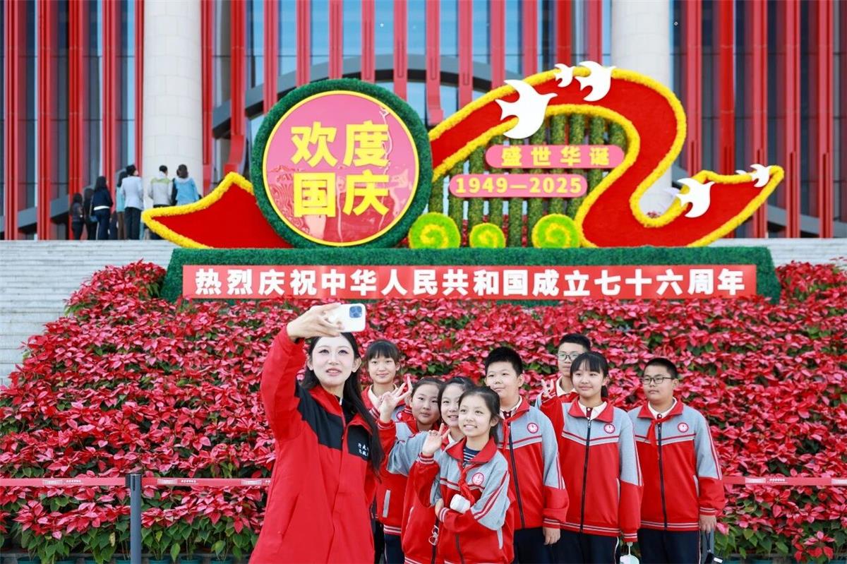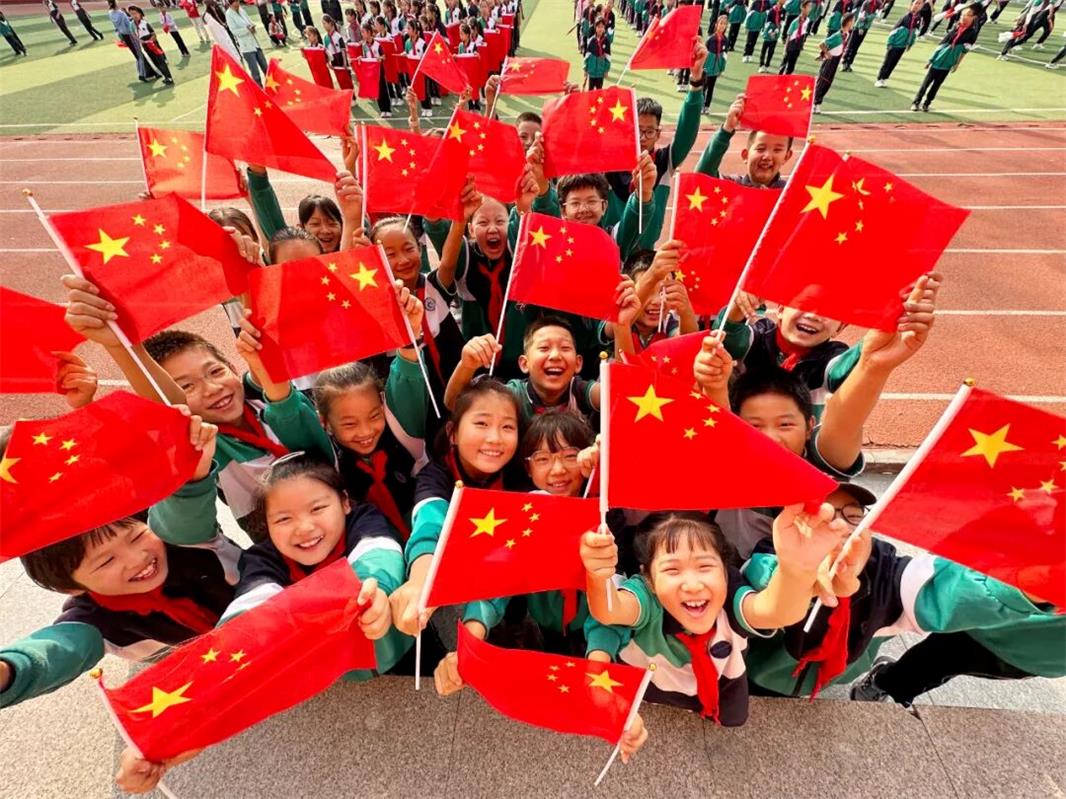 内蒙古科技大学实验小学的校园里,孩子们一张张笑脸与“中国红”定格下最纯粹的家国深情。
