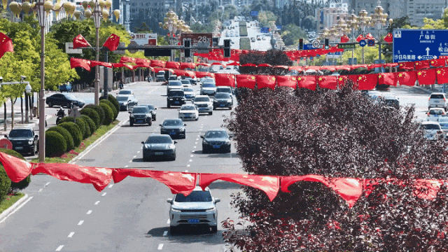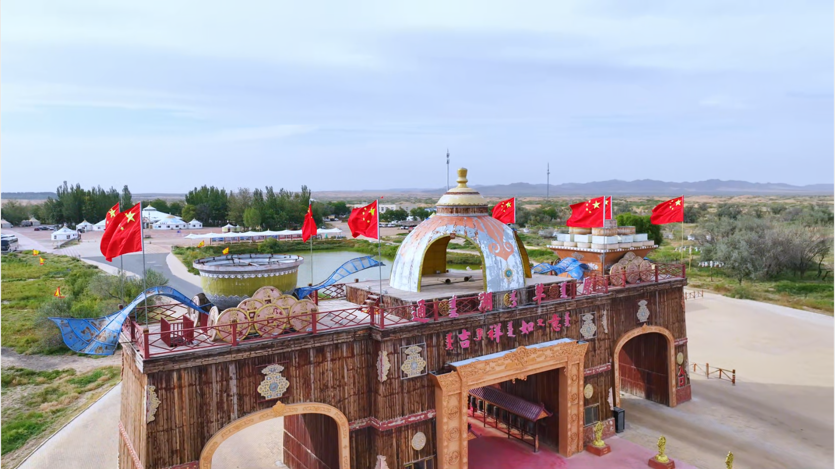 为营造庄重热烈的节日氛围,阿拉善右旗精心布置,共计摆放仿真花1000余束、彩带8000米以及红旗110面。