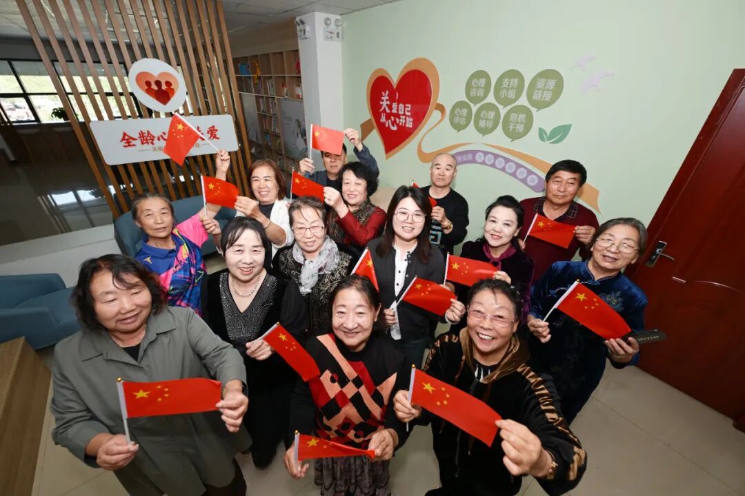 包头市九原区赛汗街道鹿原社区,银发俱乐部的老人们与国旗同框,祝福祖国。