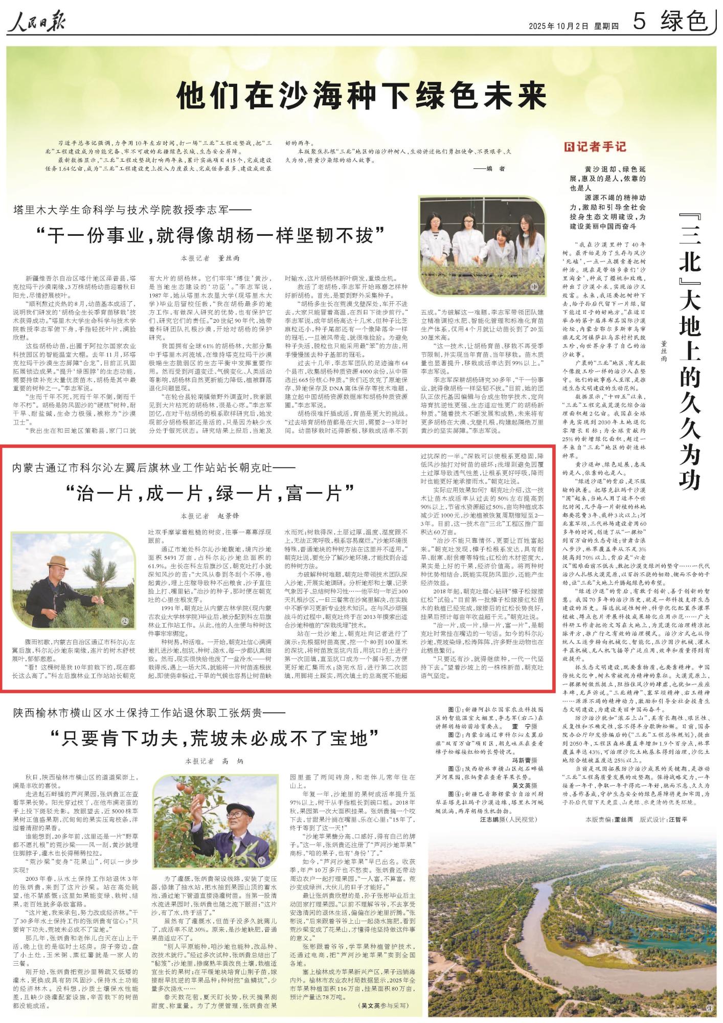 本版聚焦扎根“三北”地区的治沙种树人,生动讲述他们勇担使命、不畏艰辛、久久为功,将黄沙染绿的动人故事。