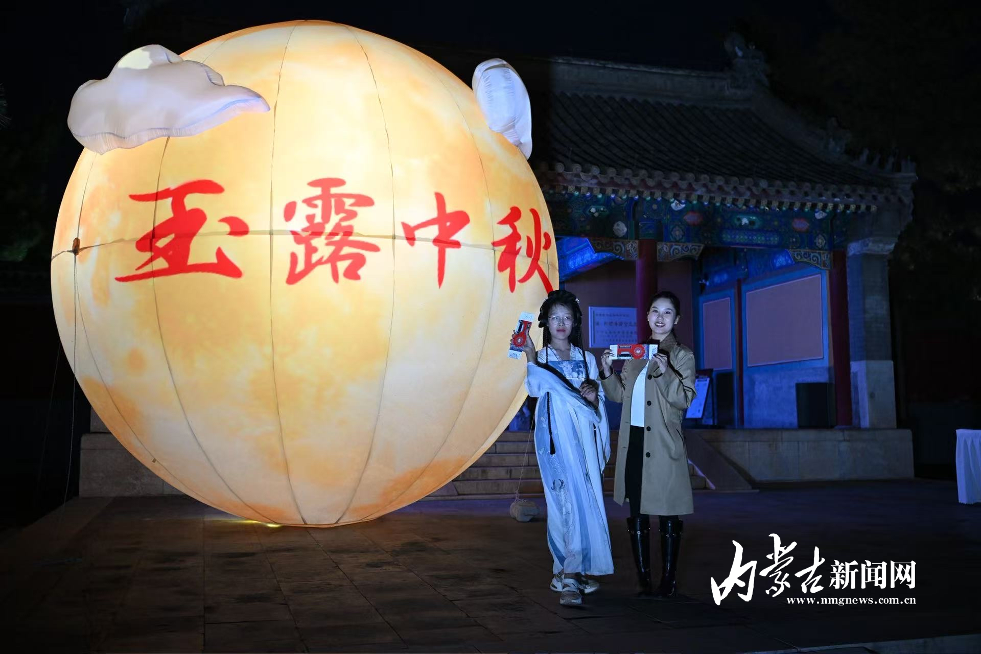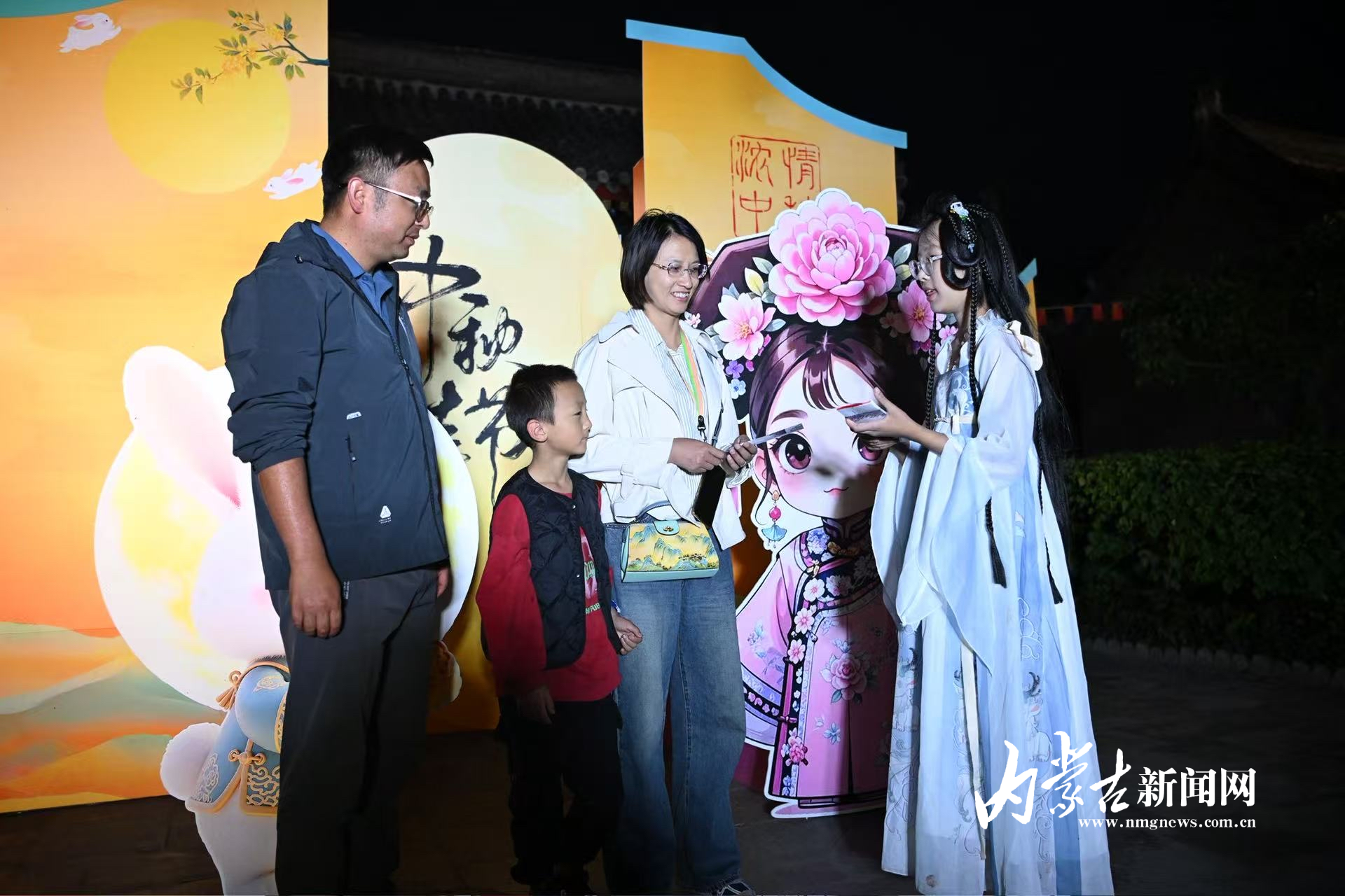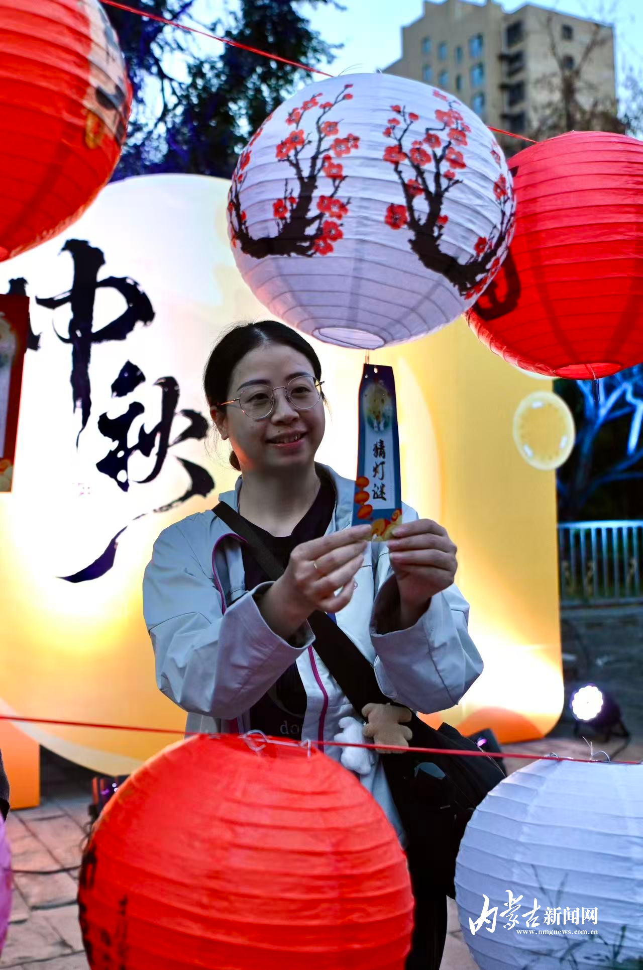 10月6日,来自重庆的游客在公主府博物馆内猜灯谜。当日是中秋佳节,呼和浩特博物院公主府博物馆举行“玉露中秋夜 相约公主府”中秋夜游活动,市民、游客参加猜灯谜、制作月饼香皂、书法体验等活动,欢度中秋佳节。摄影/草原云·内蒙古新闻网首席记者 牛天甲