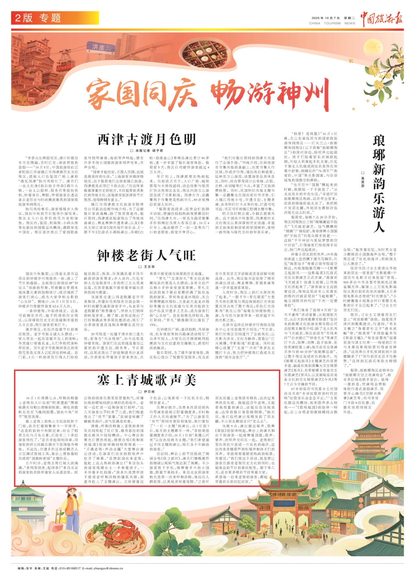 2025年10月7日《中国旅游报》第2版刊发了题为《塞上青城歌声美》的文章,报道了国庆中秋双节期间,呼和浩特塞上老街张灯结彩,游客如织。特色文创、非遗手作与地道美食备受青睐,“一日一主题”文艺演出营造浓厚节日氛围,让游客在百年老街上感受红色文化与欢乐喜庆。