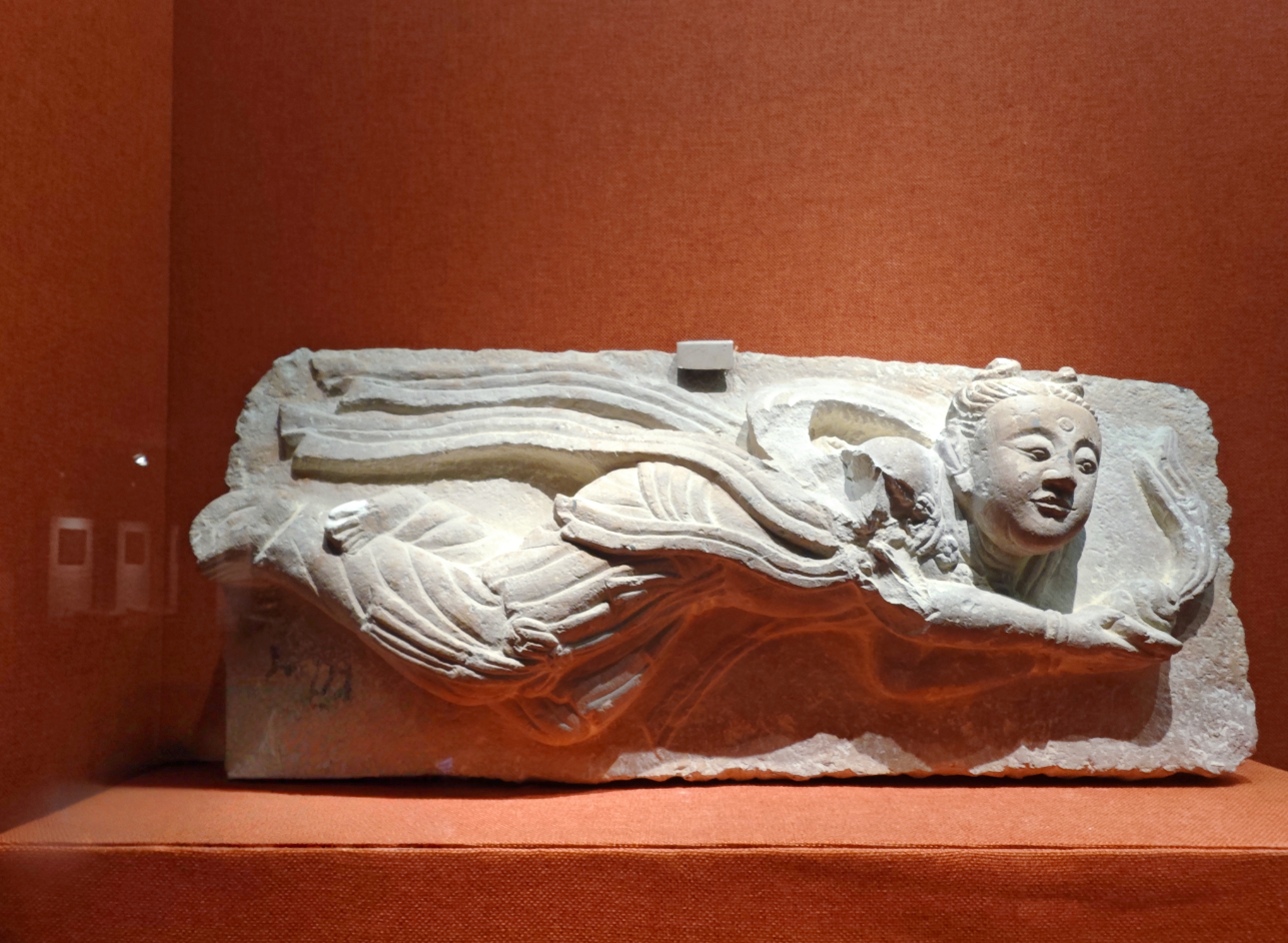 从辽上京南塔揭取的浮雕飞天石造像。
