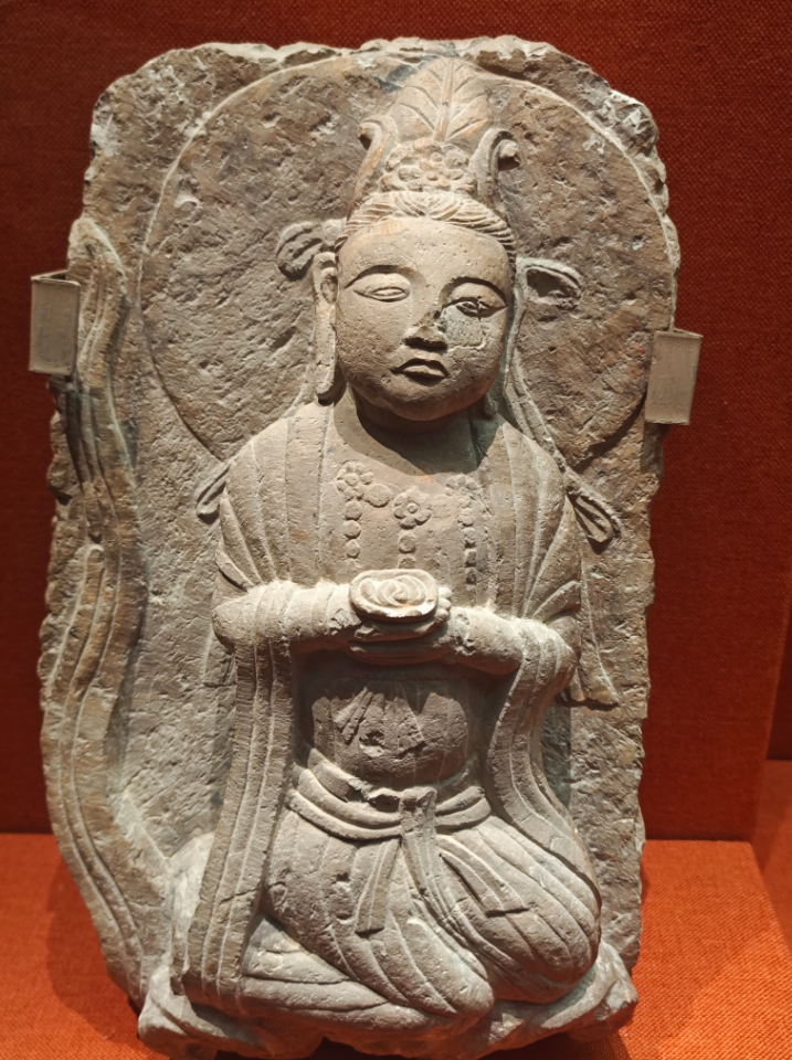 走近细看,馆藏的这6件泥塑罗汉像面部表情刻画细腻,眼部镶嵌着的黑色琉璃珠。与一般宗教造像强调神性的特质不同,这几尊罗汉造像着力表现“人”的本质,就连身体姿态甚至衣物褶皱都栩栩如生,仿佛下一秒就能开口说话。正如《重构东亚艺术地理》一书中所言——“西山坡的发现证明:文化边疆往往孕育着最激进的审美实验”。