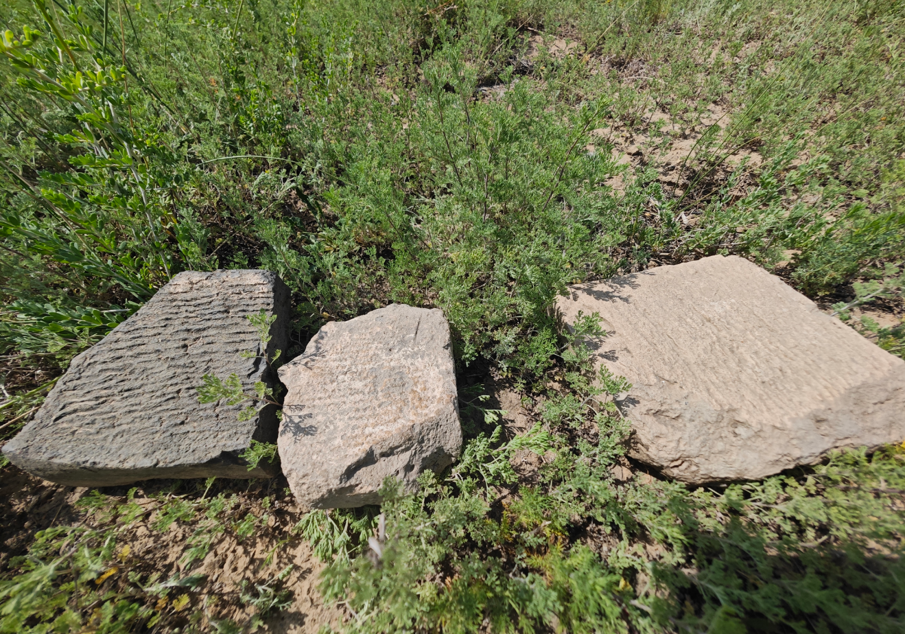 直至今天,在云中郡故城遗址仍然能捡到散落的陶片、瓦片。在城址西南角的小城附近,我们看到一些陶片及绳纹砖块。