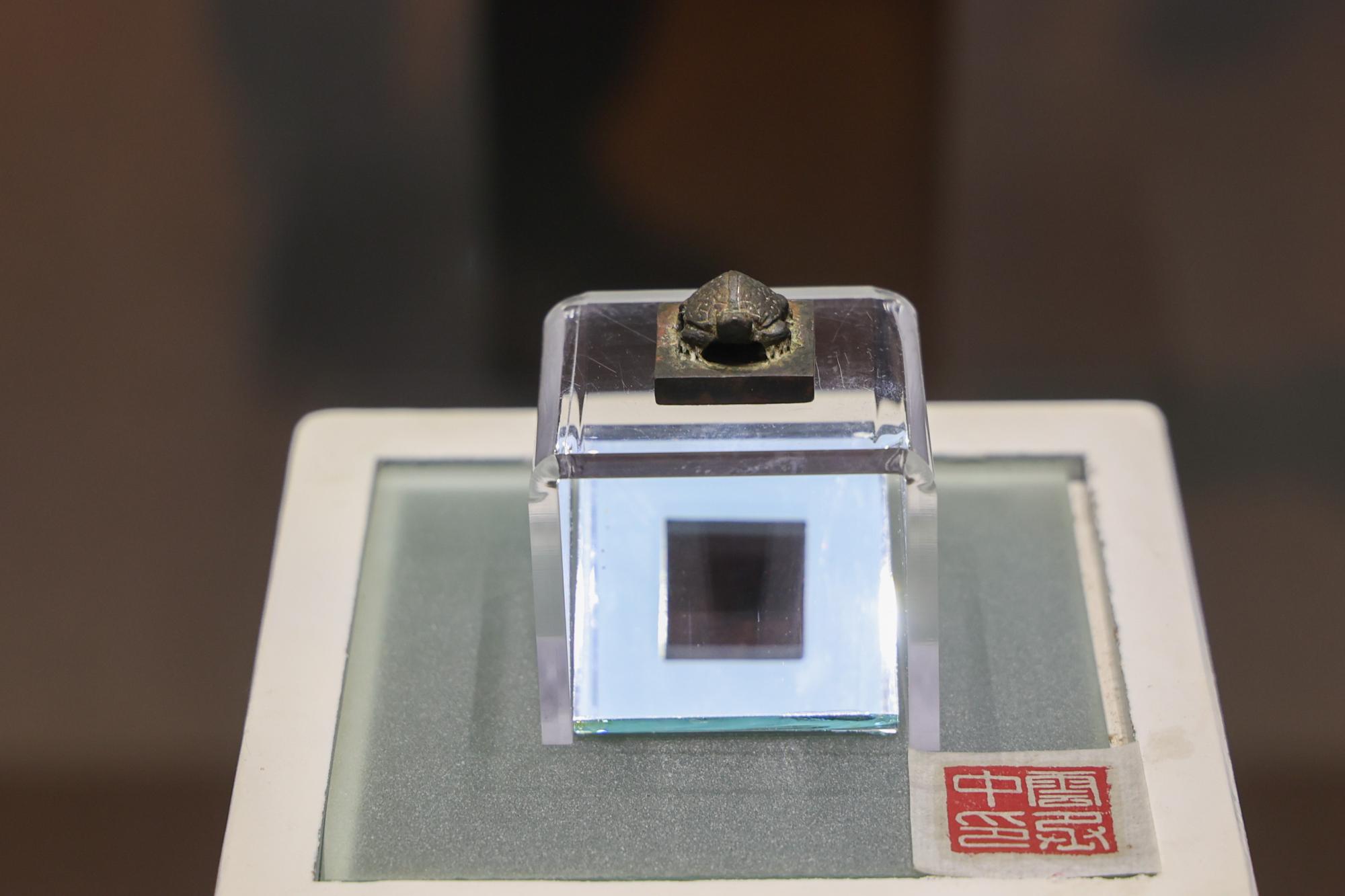 “印章高1.4厘米、边长2.4厘米,上面是龟形纽,龟纽底部刻有‘云中丞印’四个字。它的出土,对研究草原上第一座城市——云中城的建城历史提供了有力的实证。印章是20世纪70年代哈拉板申村村民在田间犁地时发现的,经考古学家研究证实,这是汉代云中郡丞的官印。”托克托县博物馆讲解员刘彩霞介绍。