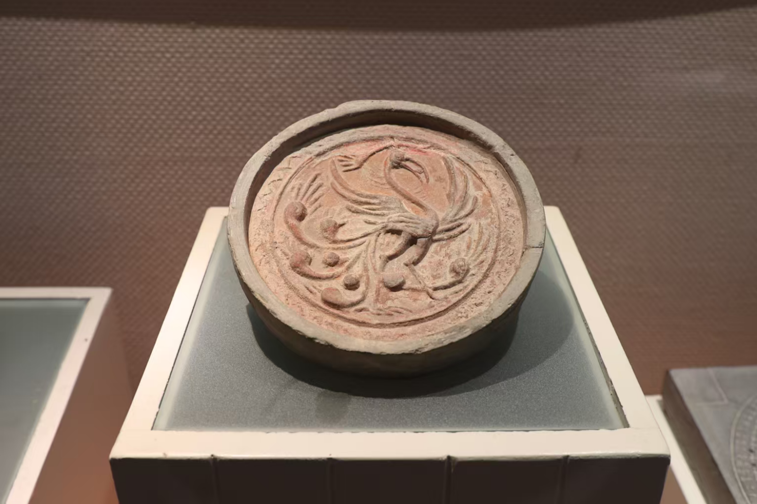 出土于云中郡故城遗址的汉代凤鸟纹瓦当。