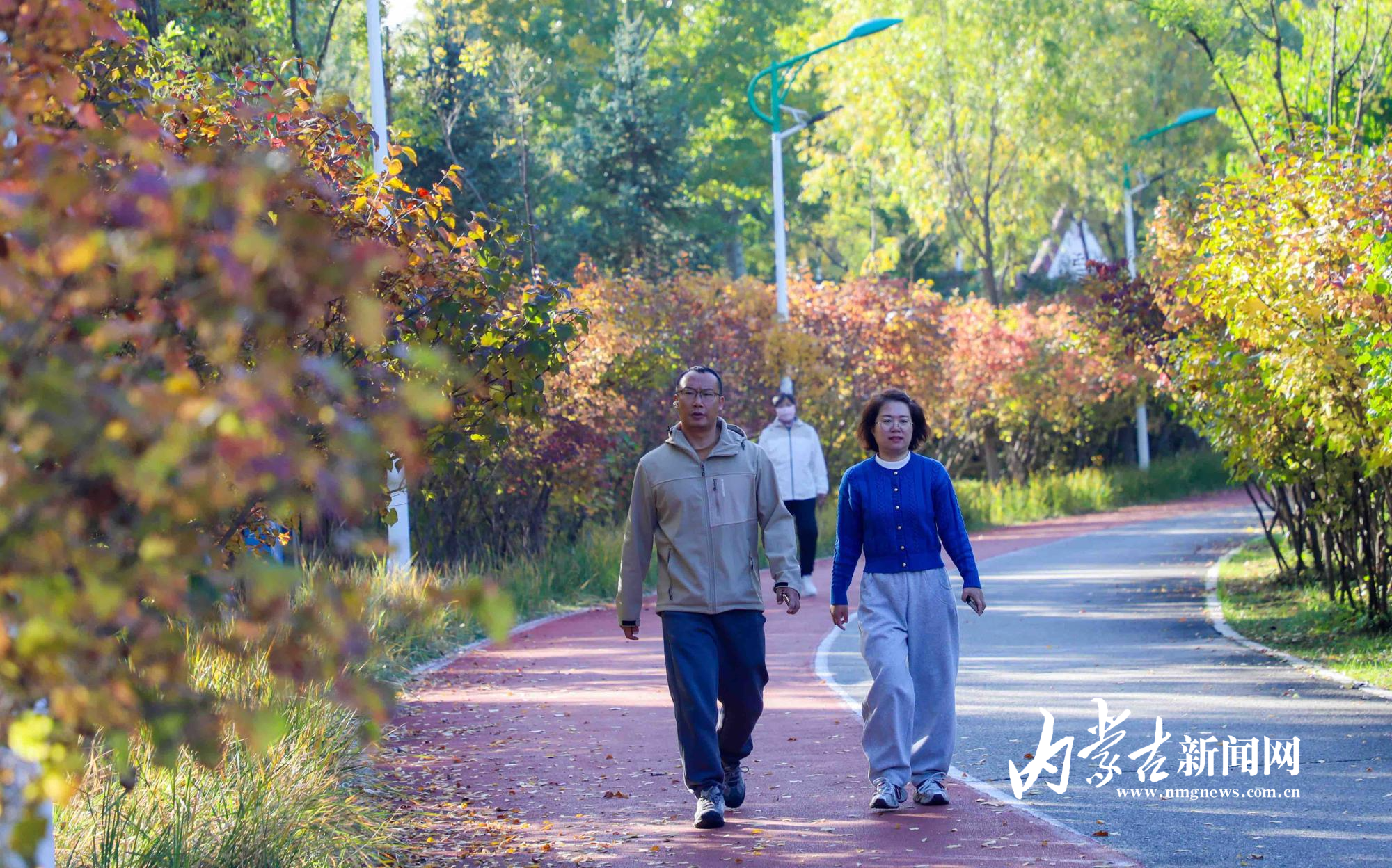 金秋十月,呼和浩特市迎来一年中最绚烂多彩的季节。在敕勒川草原上,金黄的草甸、硕大的草卷,在阳光照射下光影交错,形成一幅辽阔而温暖的天然油画。在扎达盖公园内,杨柳金黄耀眼,枫树、火炬树等换上红妆,与常绿植物相互映衬。蜿蜒的步道上,落叶铺成金色地毯,清澈的湖水倒映着蓝天与斑斓的树影,构成一幅宁静而醉人的城市水彩画,成了市民休闲漫步、拍照打卡的热门地点。