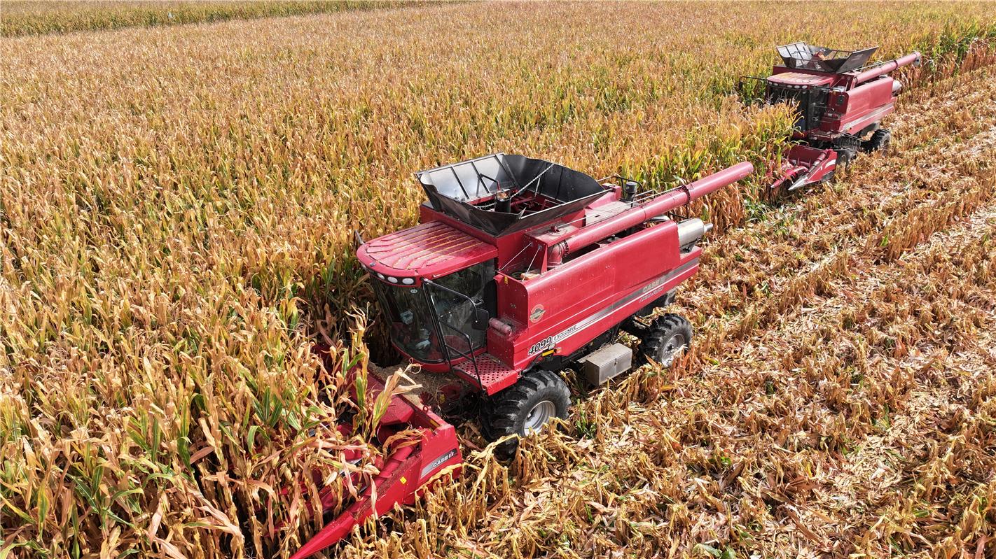 一穗穗饱满玉米被快速收入仓中。