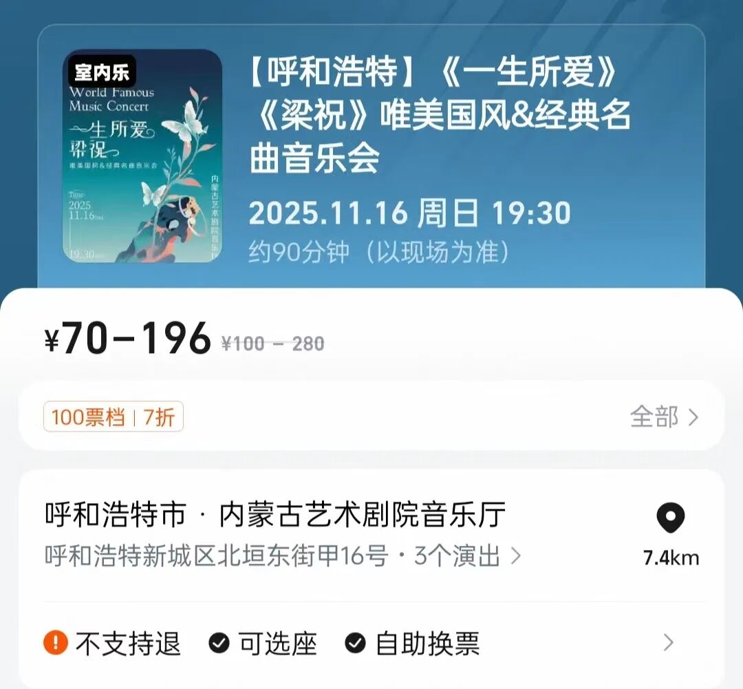 【呼和浩特】《一生所爱》《梁祝》唯美国风&经典名曲音乐会