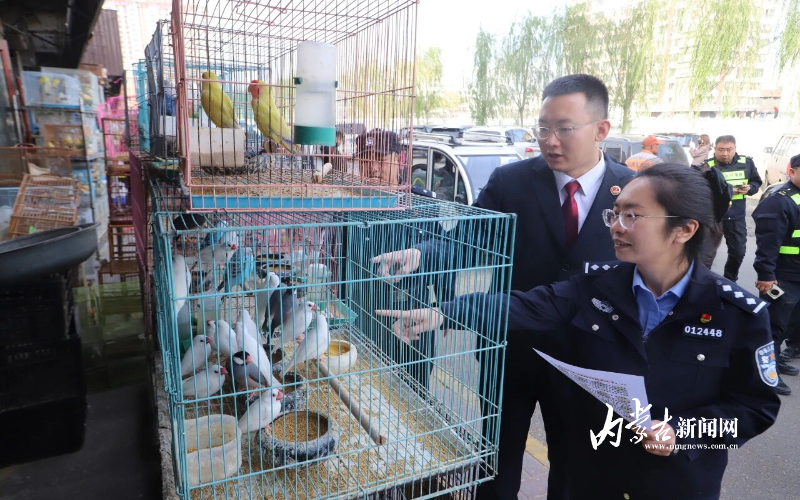 本网讯(草原云·内蒙古新闻网记者 特木其乎 通讯员 贾德京) 为切实加强野生动物保护,同时维护辖区市场合法合规的营商环境,10月14日,呼和浩特市公安局回民区分局联合回民区人民检察院、市场监督管理局、林草局等多个部门单位,对辖区内的花鸟市场展开了专项执法检查。