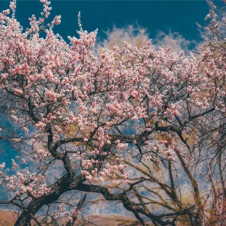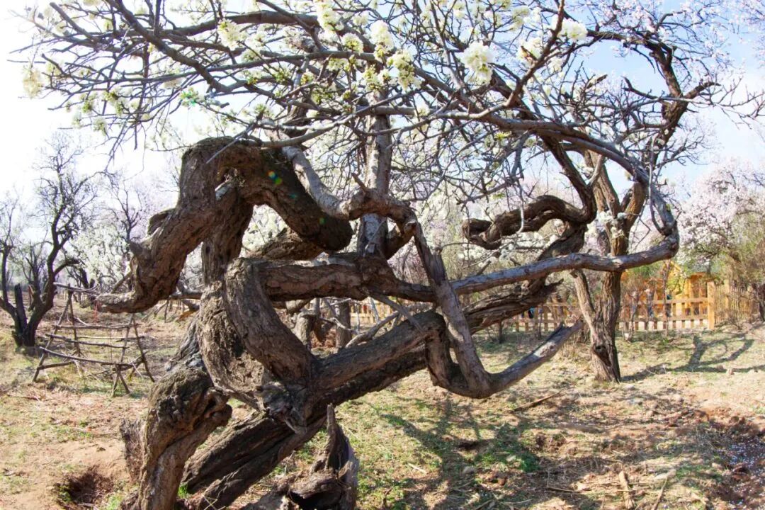 开满杏花的古杏树。