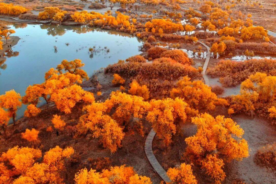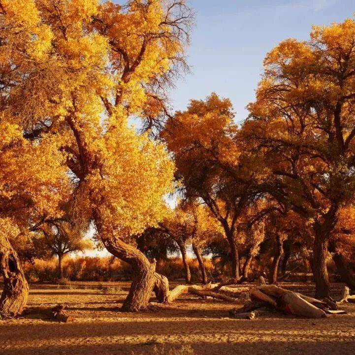 额济纳旗胡杨林是世界上仅存的三大胡杨林之一,是中国保护最完整、最壮观的胡杨林集聚地。“生而一千年不死,死而一千年不倒,倒而一千年不朽”,这是关于胡杨林流传甚广的传说,被誉为“活着的化石树”。