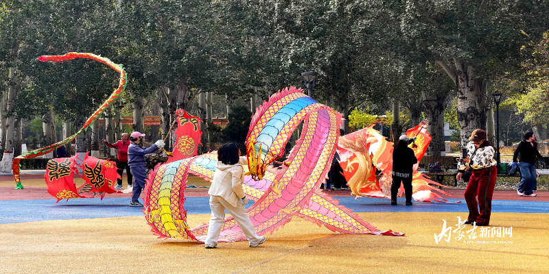 本网讯(草原云•内蒙古新闻网记者 周 蕾 )10月24日,包头市劳动公园健身广场上,20余名队员手持龙凤彩绸,随着铿锵的鼓点腾挪跳跃,彩绸如游龙般穿梭盘旋,引得围观市民纷纷驻足喝彩,为秋日的城市公园增添了一抹动感与活力。