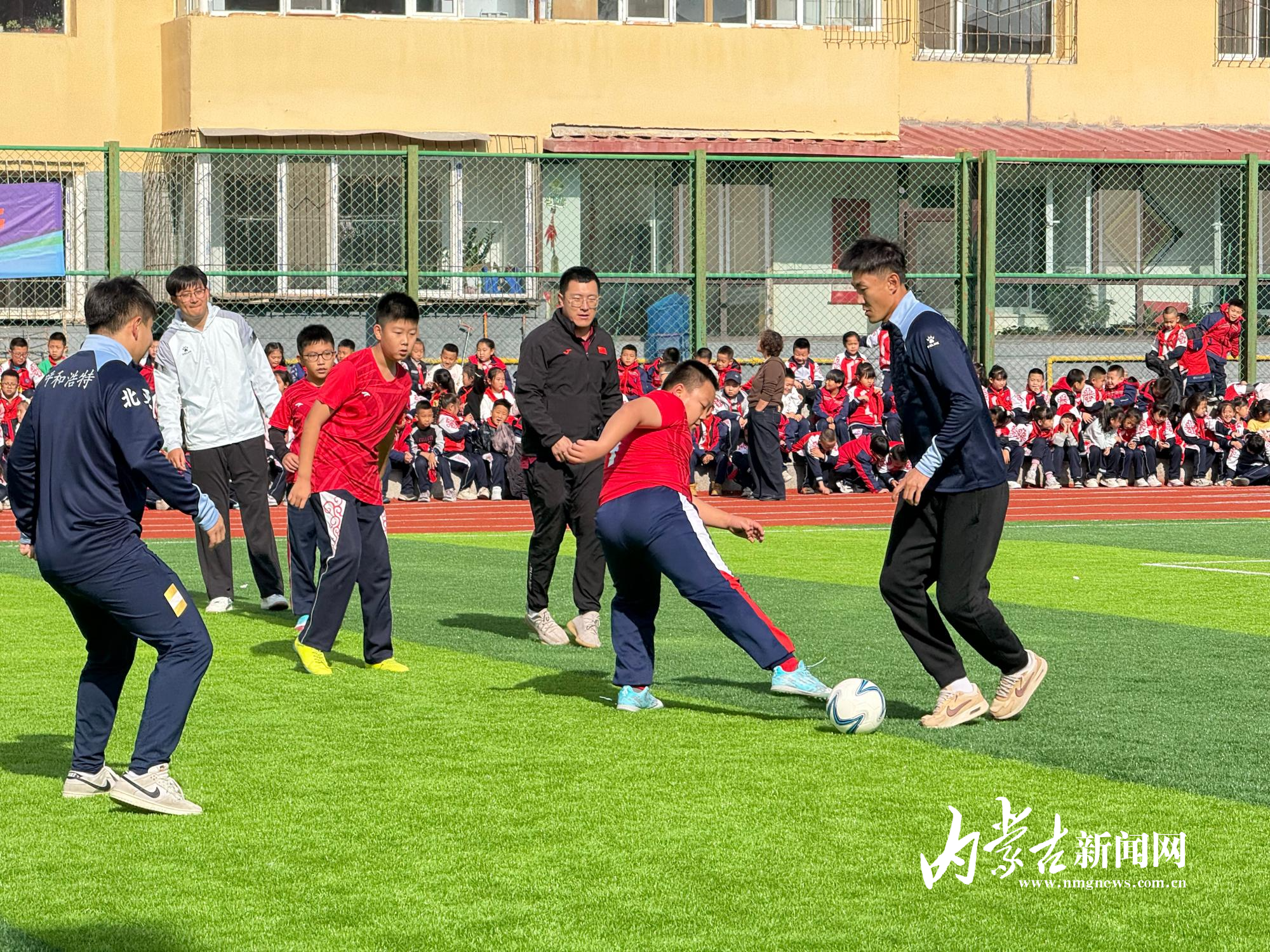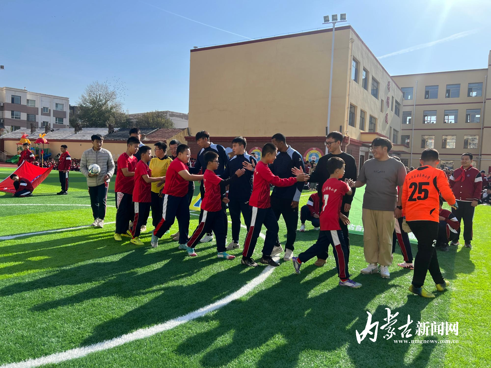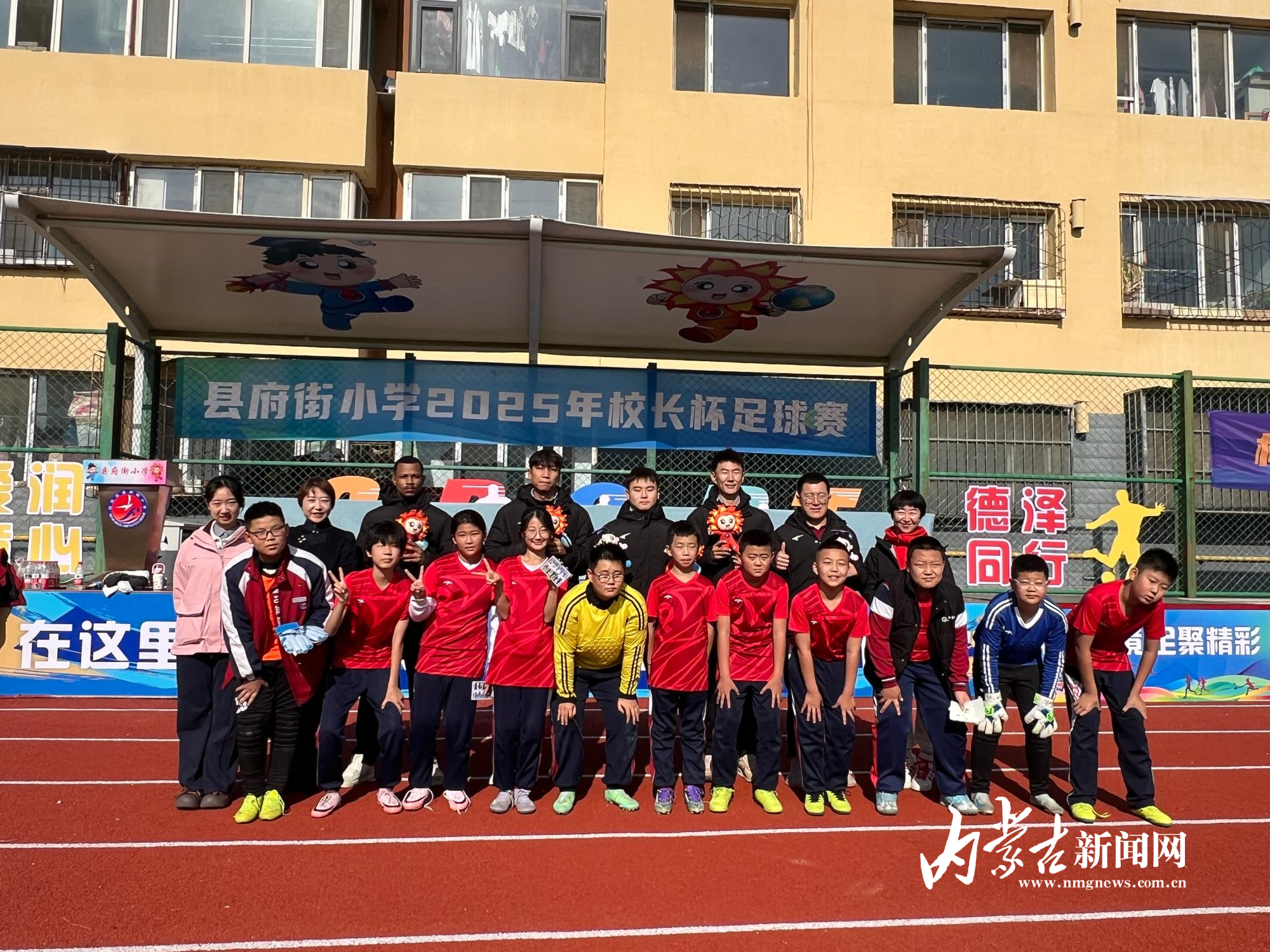 本网讯 10月28日,呼和浩特市县府街小学2025年“校长杯”足球赛举行了开幕式。蒙超联赛冠军呼和浩特队队员与学校足球队的孩子们展开了一场别开生面的“绿茵互动”,让大家实现了跟冠军“过招”的梦想。