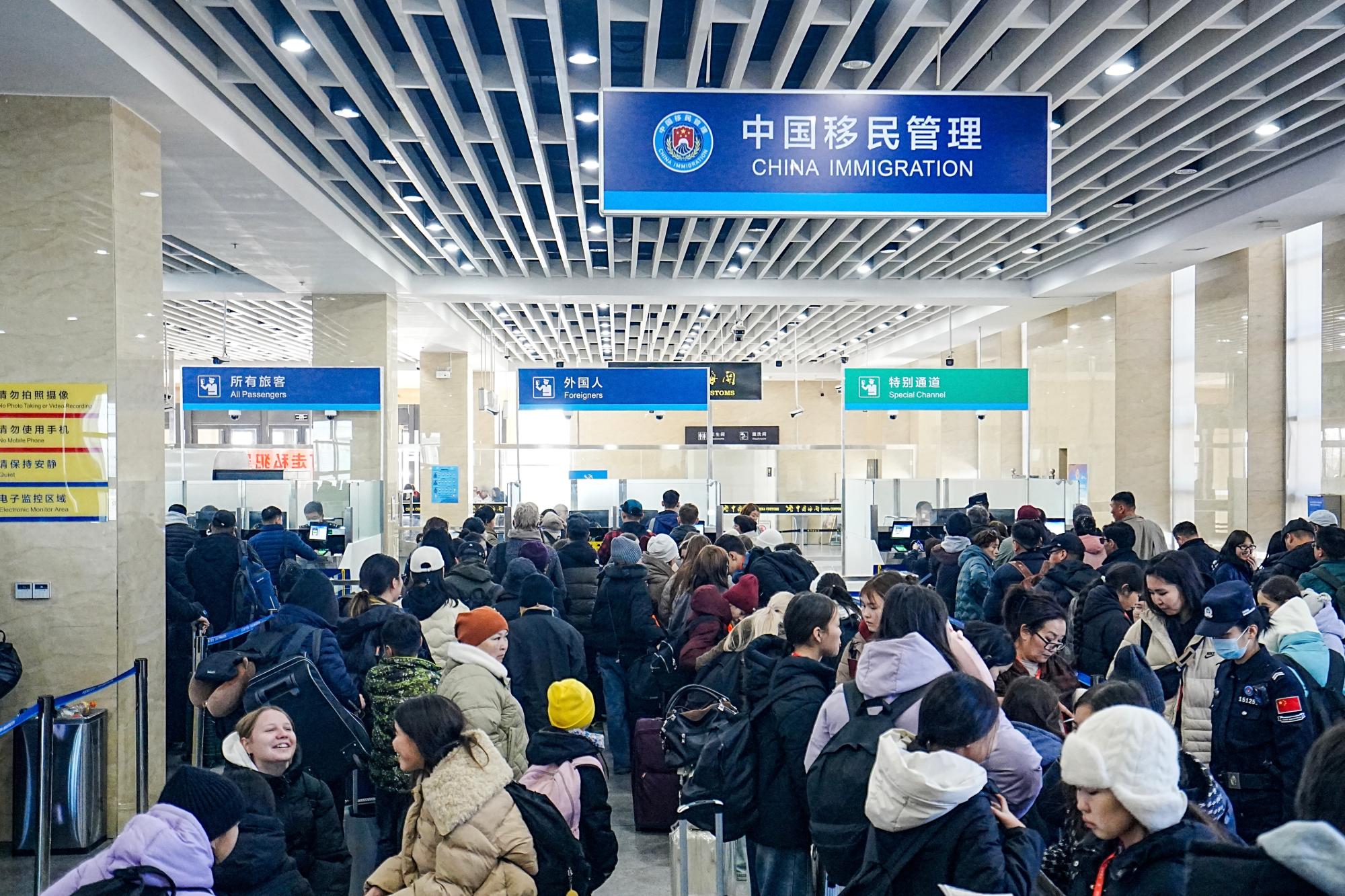 二连浩特口岸入境大厅内出入境旅客有序通关